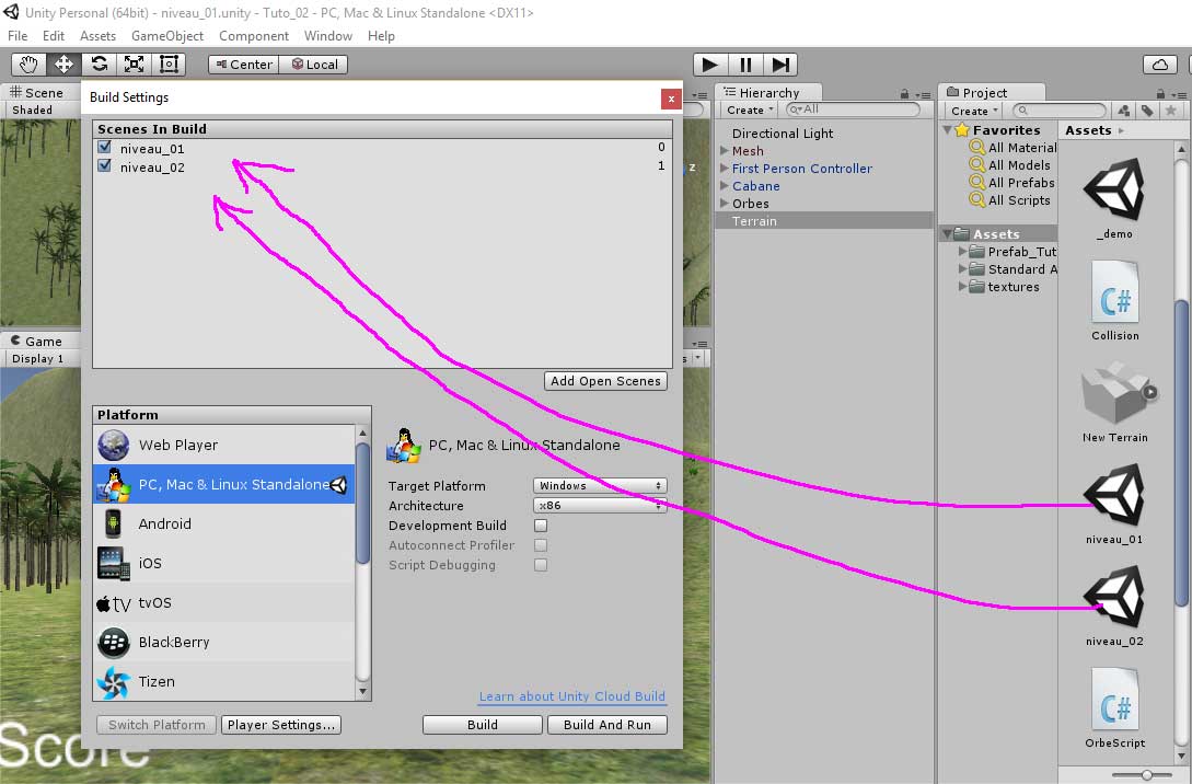 Nous allons dupliquer la scène intitulée ici “niveau_01”. Il est possible de renommer une scène dans Project (presser F2).