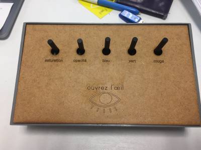 L'objectif est de construire une table de mixage avec des boutons qui permettent à l’observateur de faire des réglages sur l’image comme pourrait le faire un logiciel de retouche (photoshop). Ainsi, le spectateur peut se rendre compte que les réglages ont une incidence sur la perception et le sens de l’image. Chaque bouton permet de modifier les contrastes, les couleurs ou encore la luminosité…