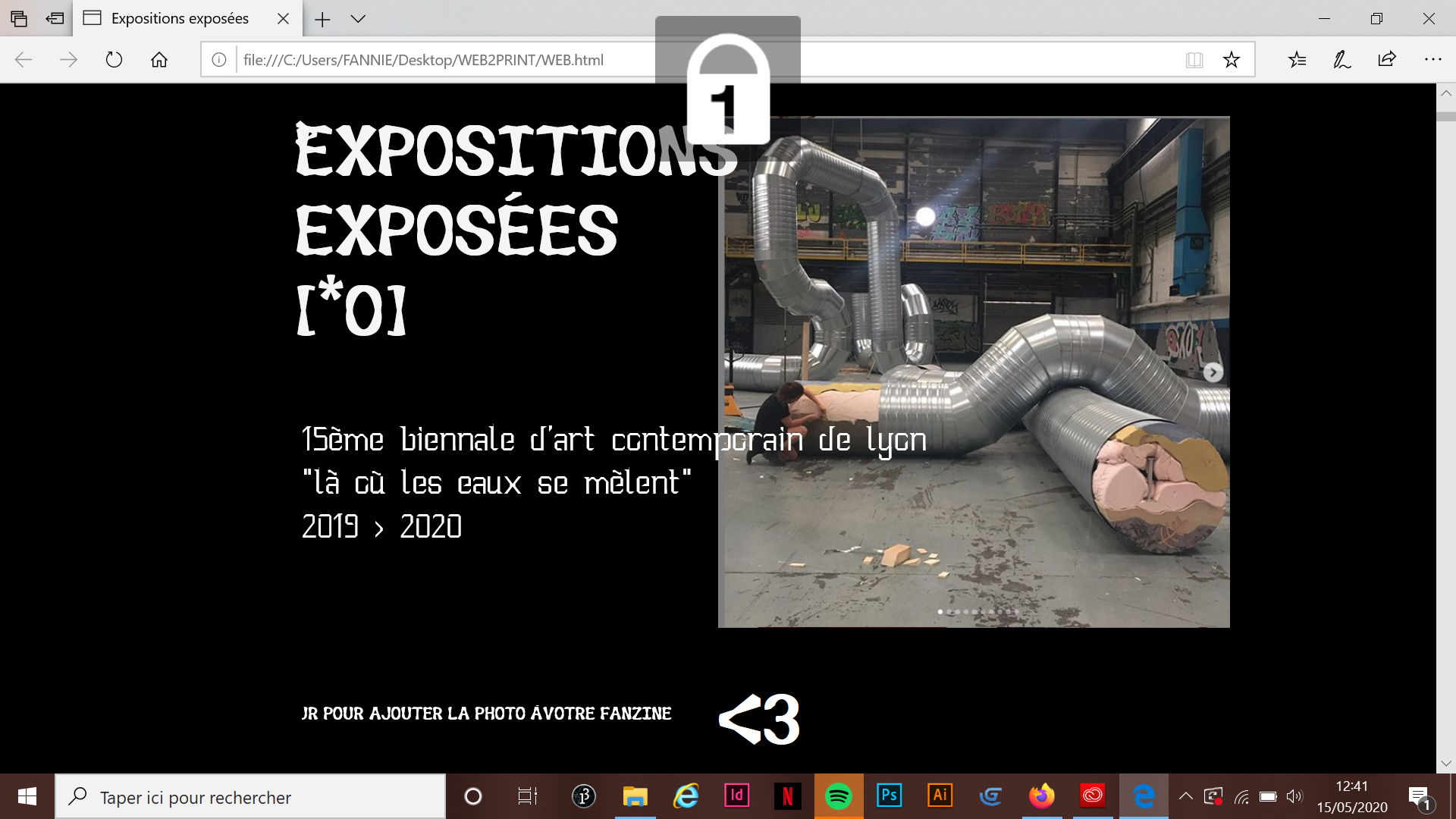 Créer des affiches à partir d'une bibliothèque d'images récoltées sur le compte instagram de la biennale d'art contemporain de Lyon. Le but est de mettre en avant les reproductions d'oeuvres trouvées sur Instagram.