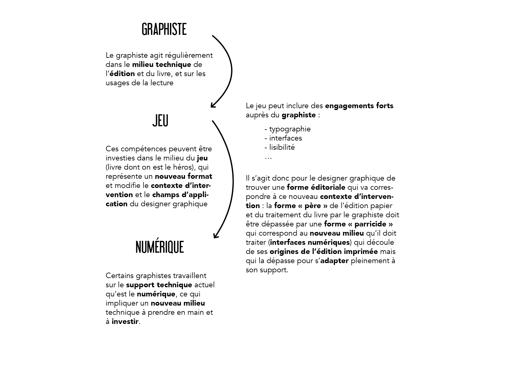 Les unes doivent vous permettre de dégager assez clairement ce qui constitue le propre de la mission du game designer et ce qui caractérise de façon distinctive la forme jeu; les autres, ce qui est le propre de la mission du graphic designer et ce qui caractérise de façon distinctive les dispositifs formels relevant du design graphique.