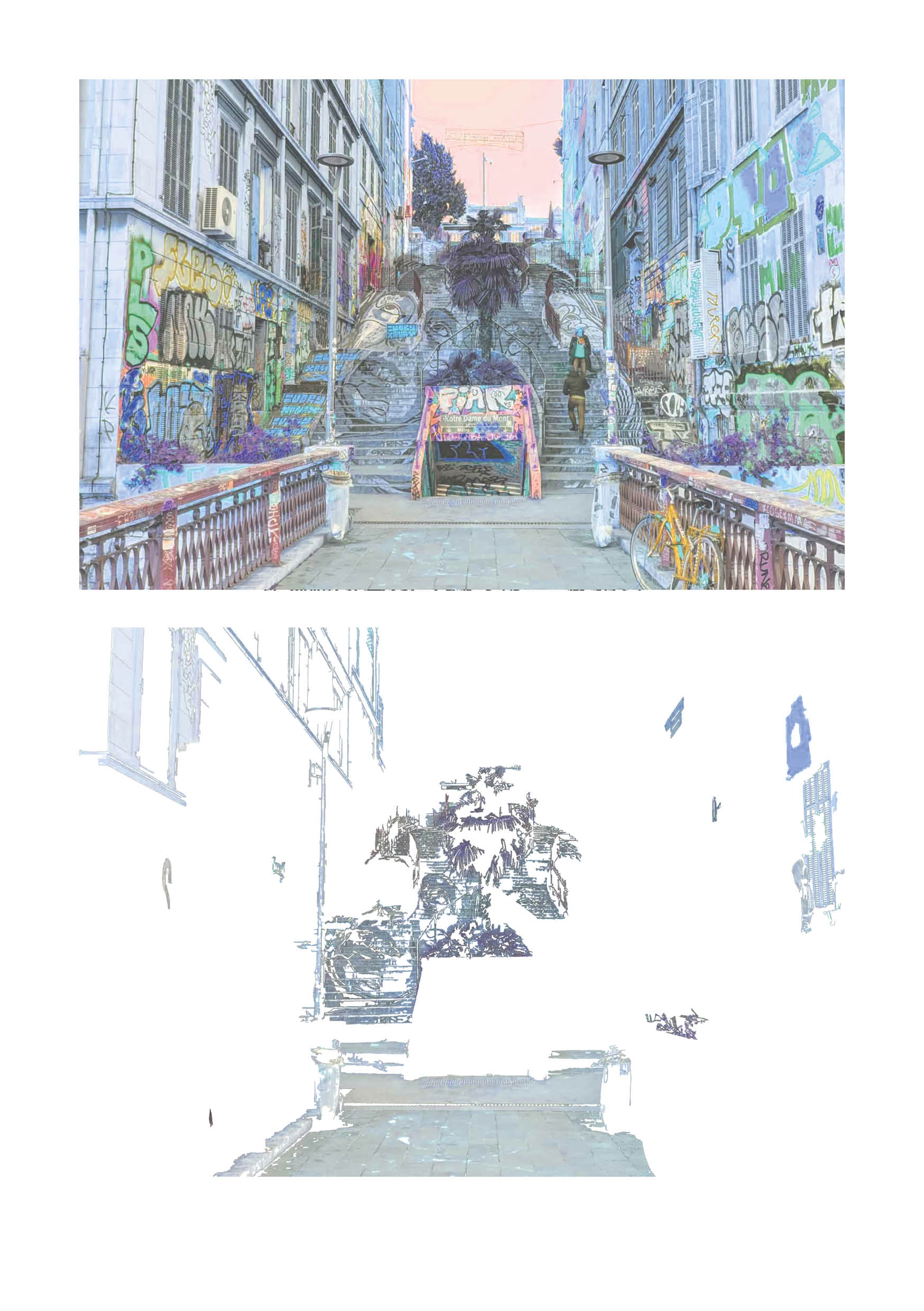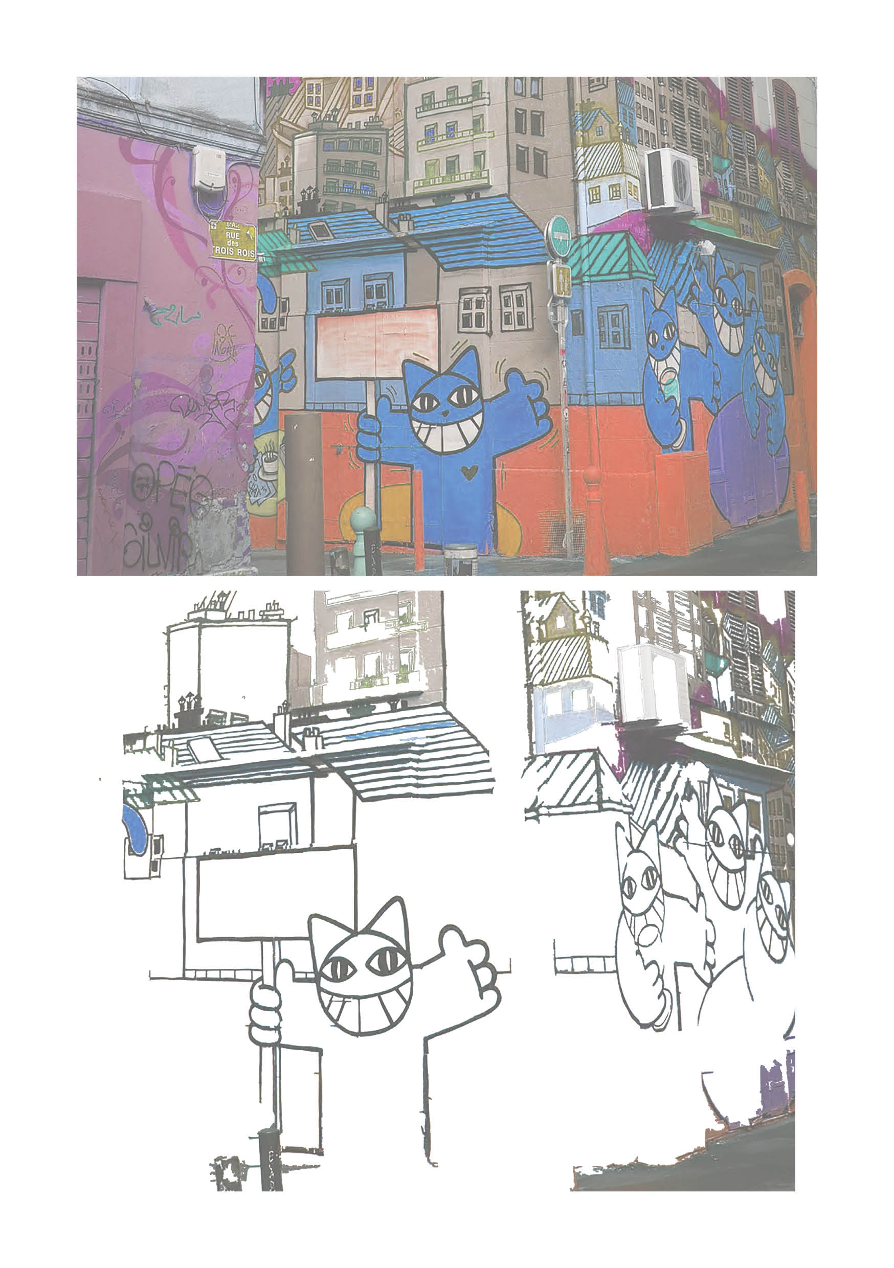 Travail de la photo de ville en essayant d'extraire des formes en utilisant le principe de Loi de GESTALT séparation fond/forme :
