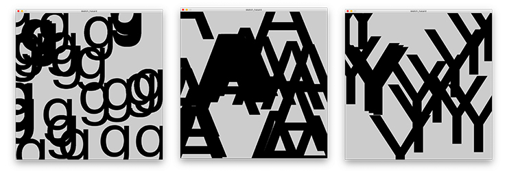 avec Processing, création de paysages typographiques aléatoires selon la vitesse et le déplacement de la souris