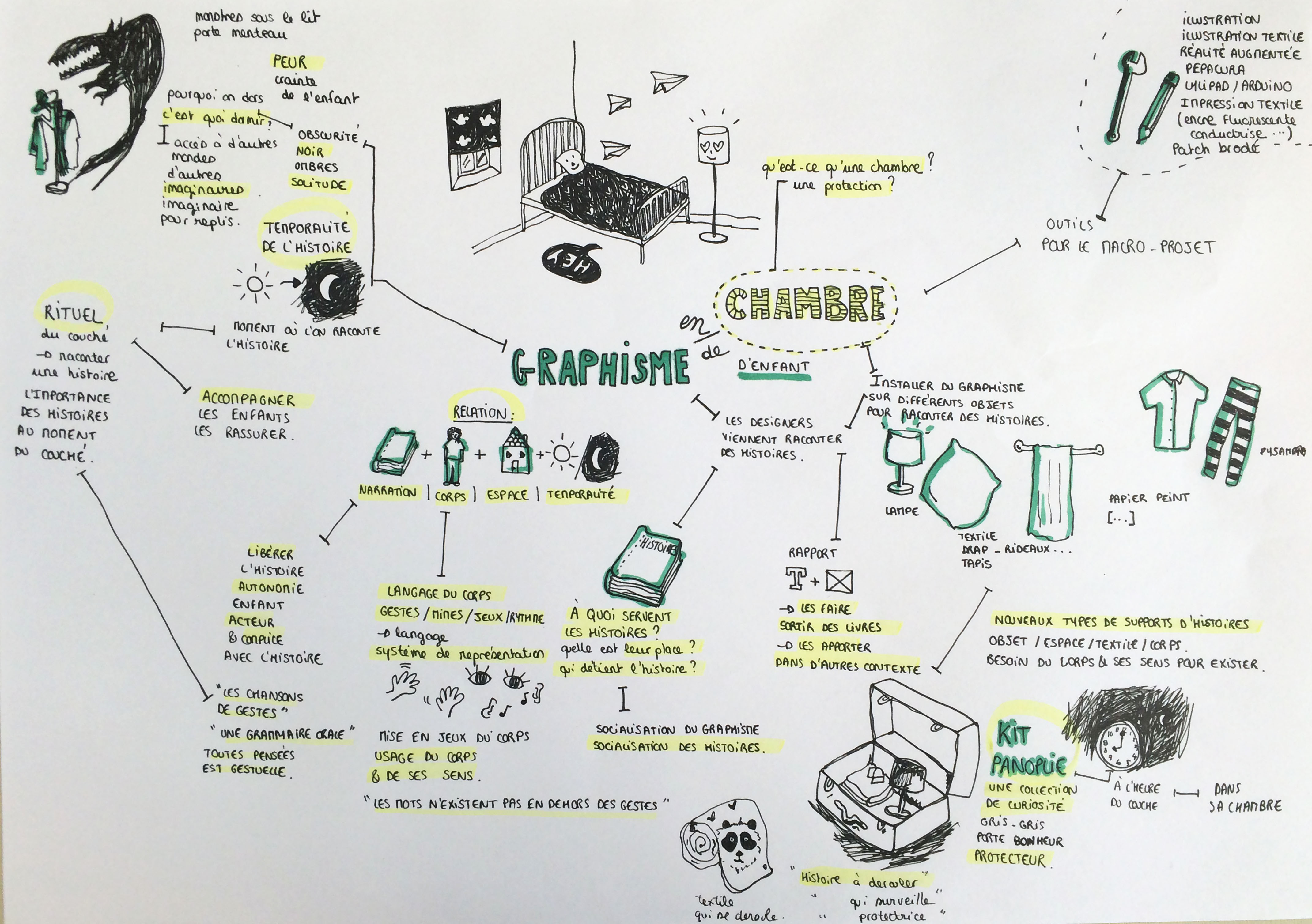 En effet ce rituel, marque un passage difficile pour chaque individu, en général l’enfant se retrouve complètement seul, uniquement dans sa chambre, à ce moment forcé du coucher. Ce dernier reçoit un ultime baiser de ses parents, il se blottit contre son doudou à l’odeur rassurante, désormais cerné dans sa couette douillette… Ses parents s’éloignent doucement, leurs voix se dissipent, ils appuient sur l’interrupteur, et la chambre vacille dans le noir ! Seul un fin liseret lumineux découpe la porte dans l’obscurité de la chambre, car désormais la clarté est à l’extérieur, de l’autre côté de la porte. La lumière est éteinte, les bruits se réveillent, et soudain sa chambre devient un espace inconnu, où l’immobile s’anime, une chambre qui devient le terrain propice aux rencontres menaçantes. Le sujet est figé, comme coincé, prisonnier de son propre corps, il ne cesse pourtant de scruter chaque recoins de sa chambre nébuleuse de vie. Ne pas quitter le regard, ne pas fermer les yeux, ne pas s’endormir, car dans l’obscurité tout semble possible et surtout le pire !