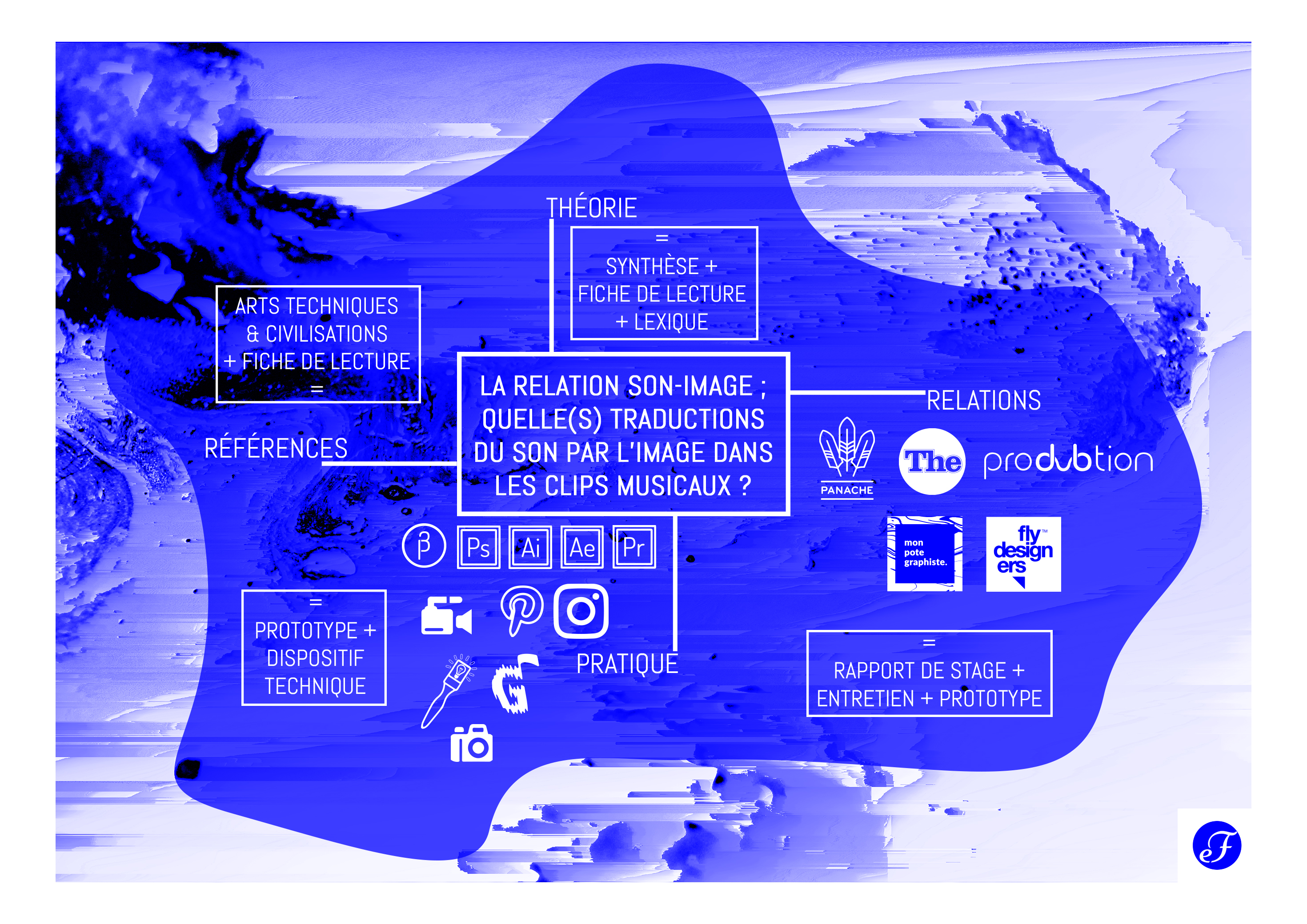 Ma période de stage se découpe en deux stages distincts conjuguant tous les domaines du design graphique. Je serai du 29 Mai au 21 Juillet chez MonPoteGraphiste, cette période s’orientera vers le packaging, la communication imprimé (édition, cartographie) et les graphismes appliqués au design de mode. Ensuite, j’effectuerai ma deuxième période du 28 Août au 29 Septembre chez FlyDesigners, je serai alors mise en relation avec des projets mettant en lien webdesign, motiondesign et design sonore.