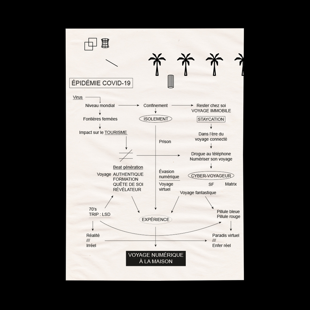 J'ai donc posé ma problématique globale du macro-projet et fiche technique, qui est : le design immersif, alternative au voyage traditionnel ?