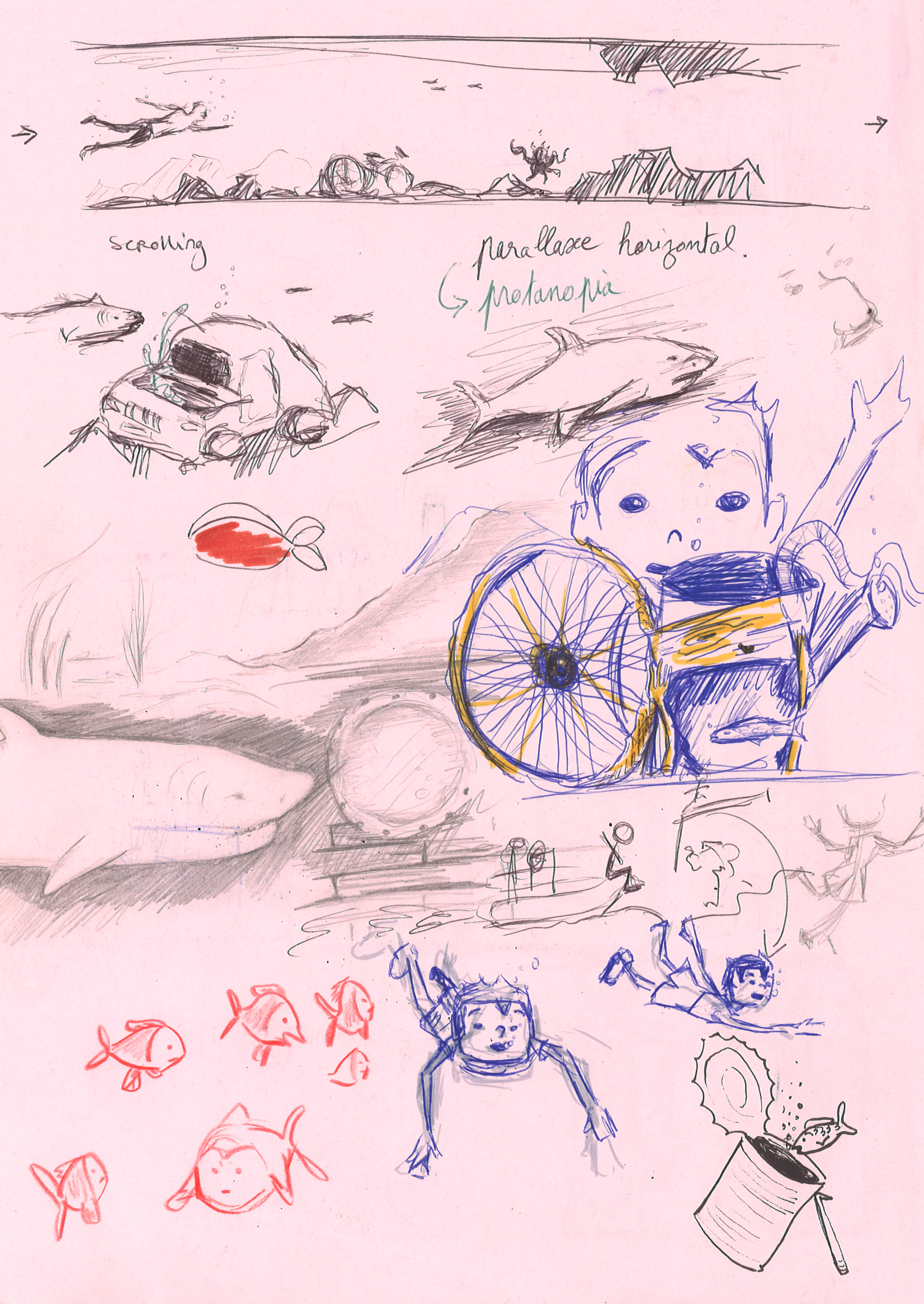 Face à ces constats, j’ai voulu illustrer cet écosystème perturbé à travers un dispositif narratif interactif. J’ai donc imaginé un paysage à faire défiler, et qui prend vie grâce à un effet de parallaxe. Cela permet de “plonger” le spectateur, de l’immerger dans les illustrations. Le paysage poétique proposé au début se transforme, se dégrade petit à petit.
