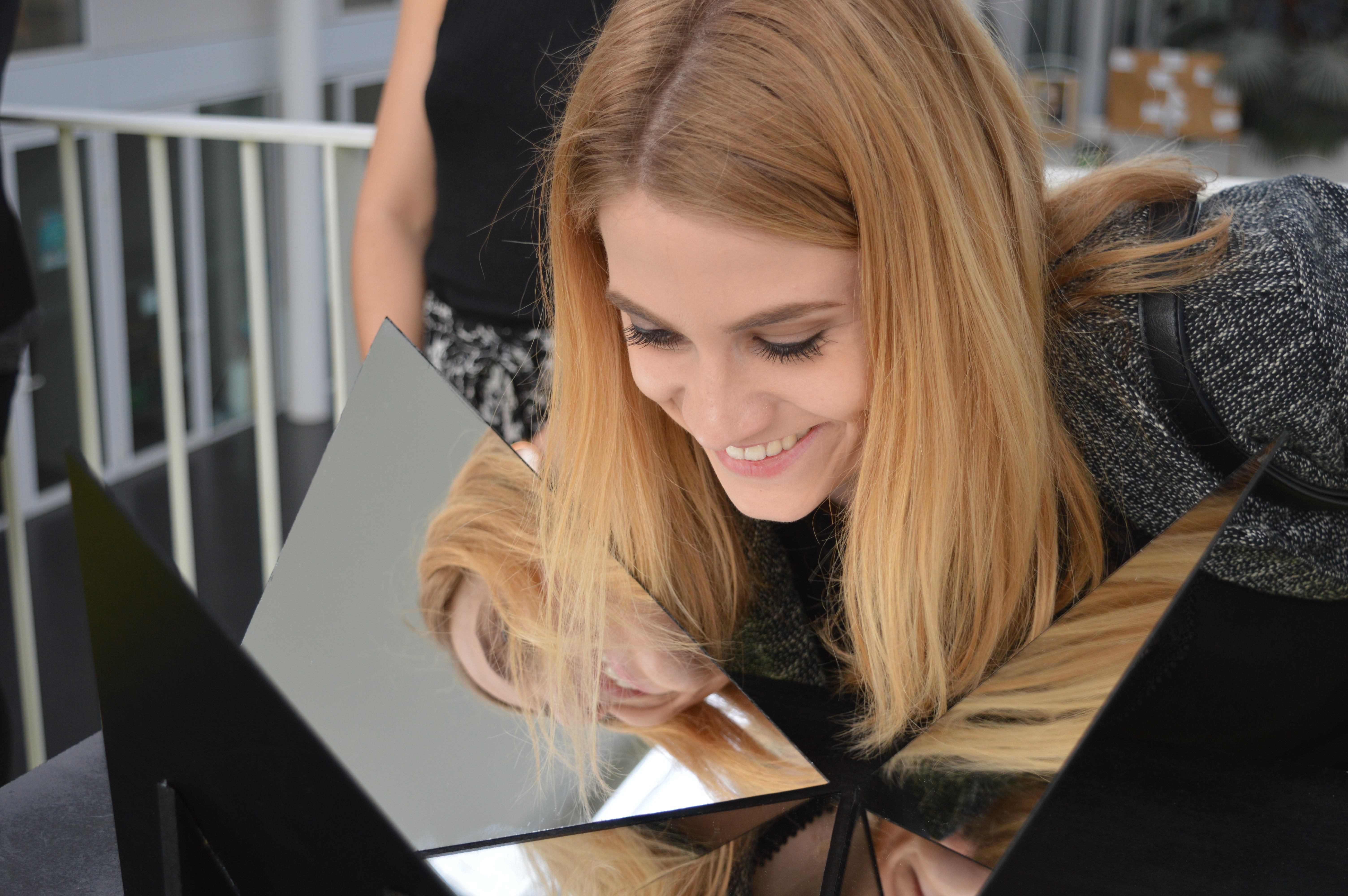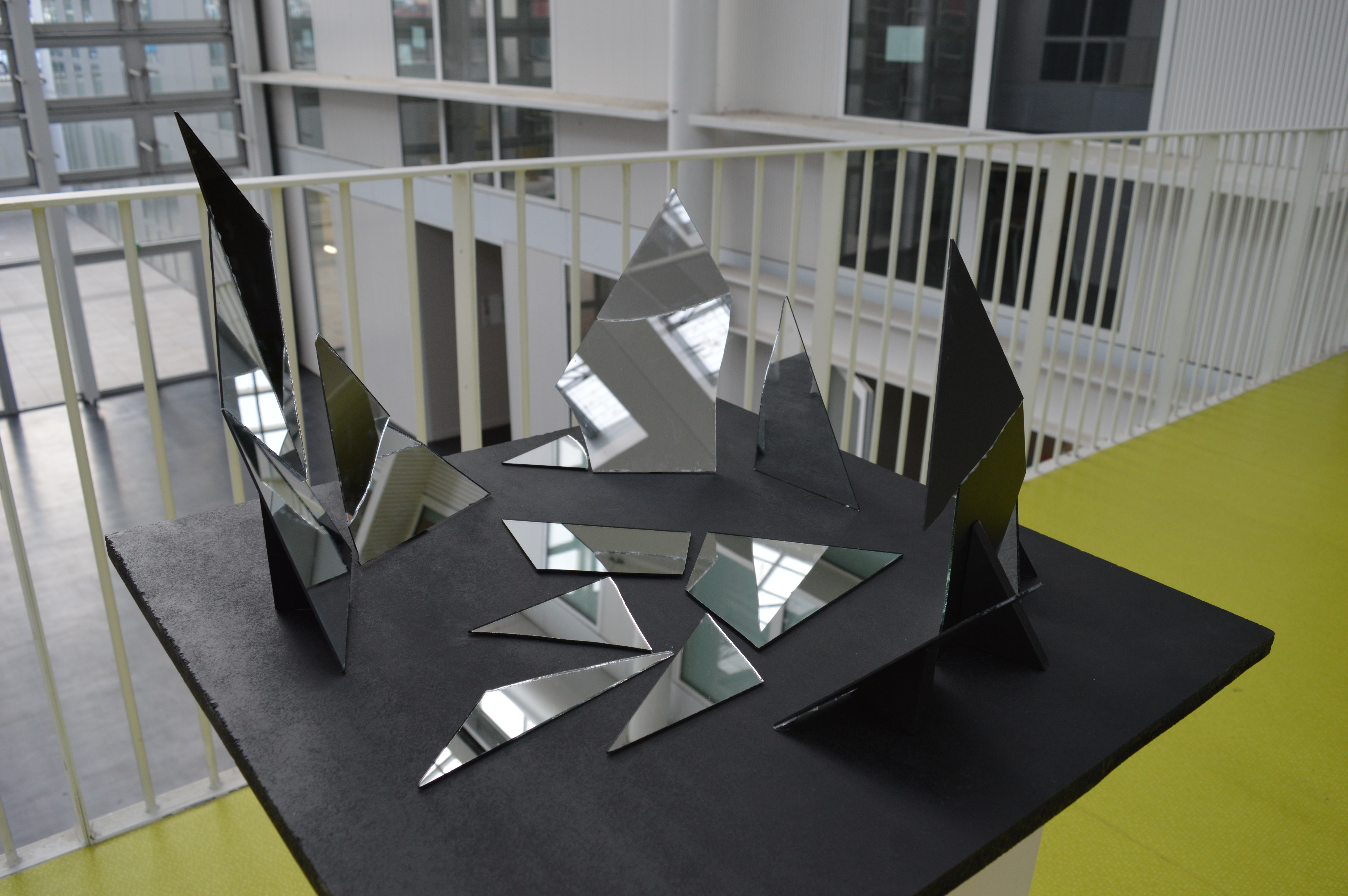 Pour finir, nous avons utilisé le miroir afin de créer une mise en abîme de l’environnement visible, et ainsi de la réalité. Par la suite nous avons brisé les miroirs pour amener une distorsion de notre vision. Cette dernière entraine une perte des repères visuels ainsi qu’un déséquilibre. Face à ces reflets chacun est libre de les interpréter selon ses sensibilités.