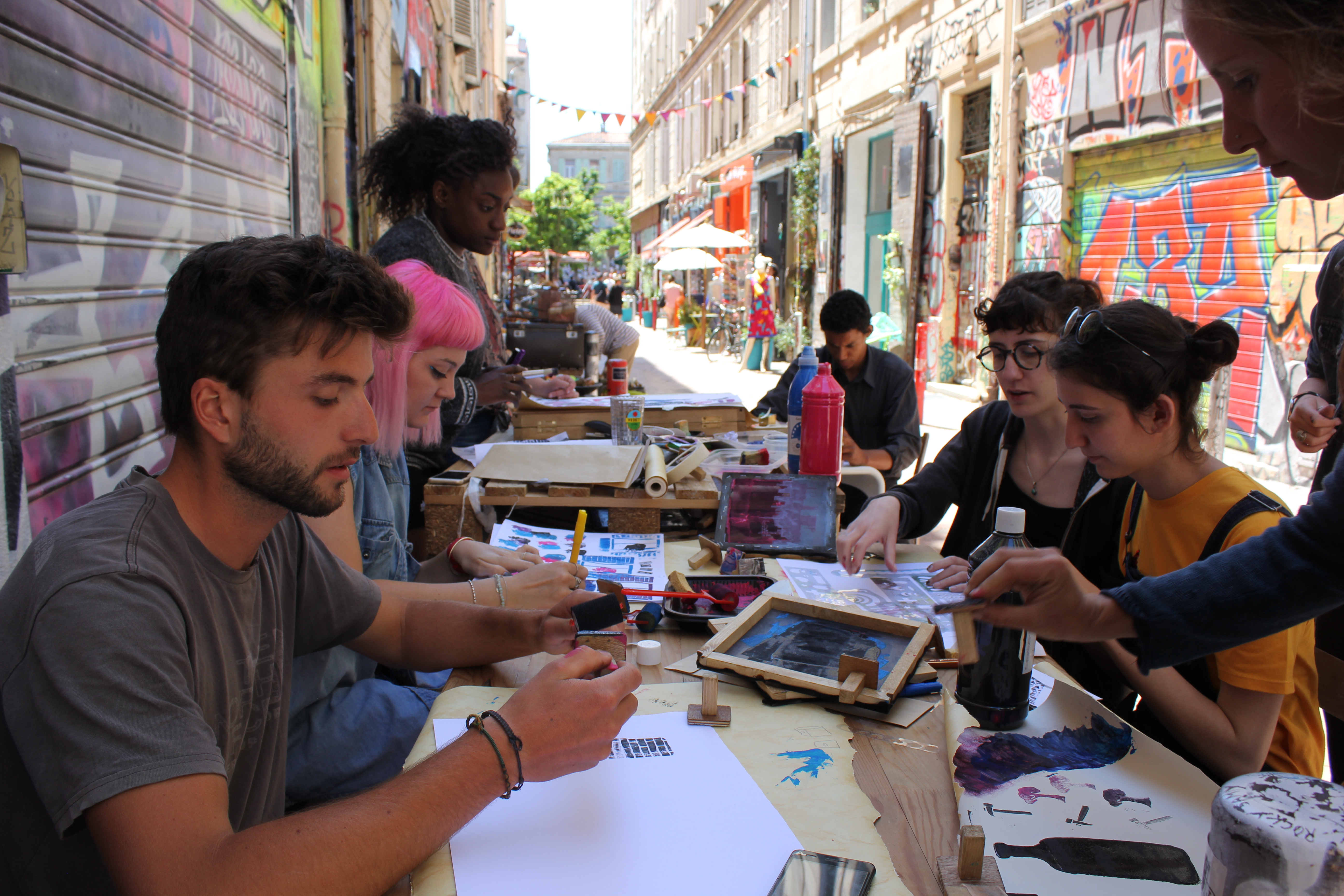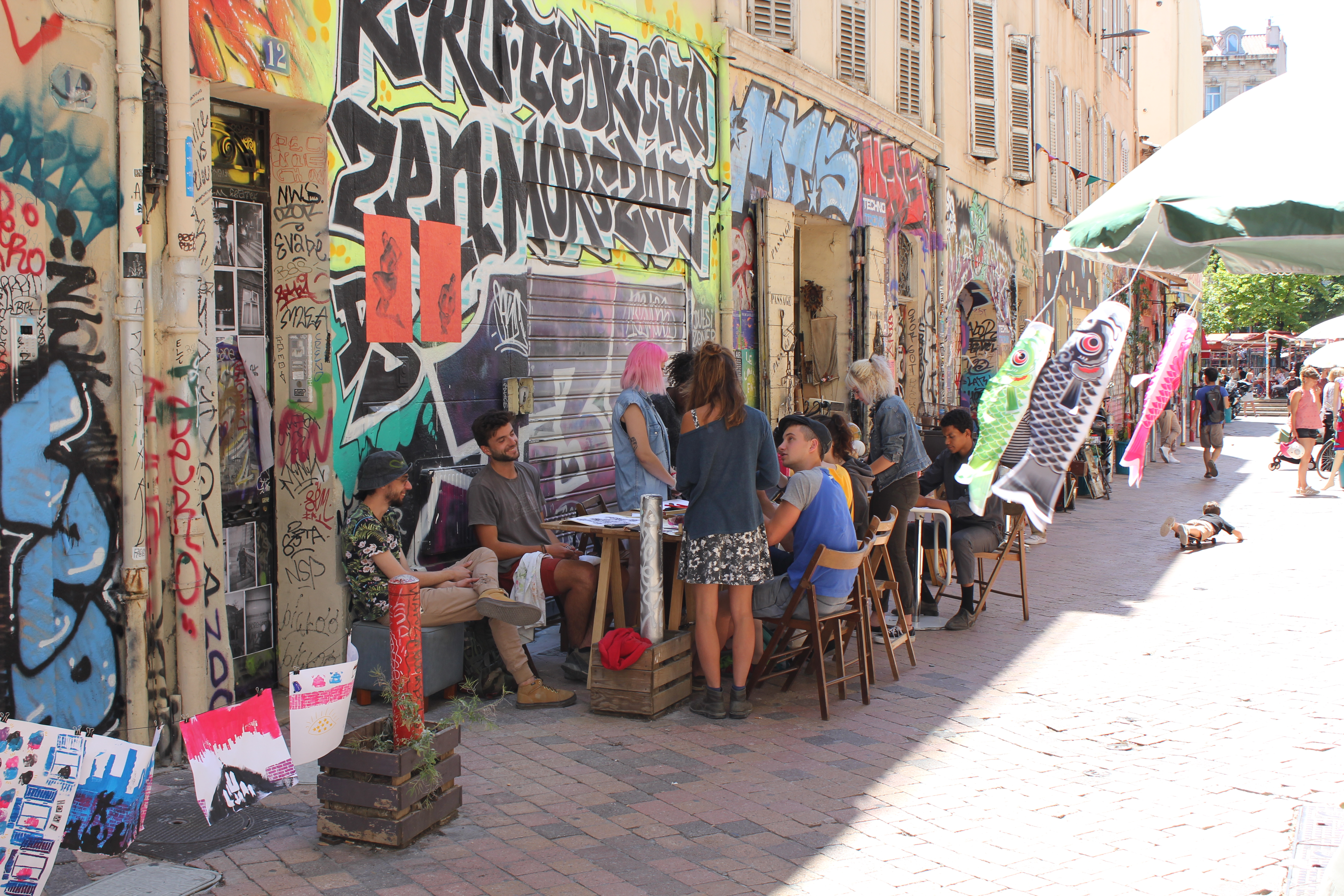 J’ai pu expérimenter l’atelier en l’état dans deux lieux: Agent troublant à Marseille et l’archipel à Nimes. Le premier est une fanzinothèque est une gallery situé au cour Julien. C’est un endroit qui fonctionne grace à une équipe de bénévoles tous fans de fanzine et d’art graphique et plutot soucieux de partager leur passion autour d’eux. Ils organisent d’ailleurs souvent des événements, des ateliers et des expo pour promouvoir ce genre de culture et cette philosophy de faire. C’est un très bon endroit pour expérimenter l’atelier car il est situé au milieu de quartier populaires comme La Plaine ou Noailles mais aussi car ce sont des quartiers qui illustrent assez bien ce gouffre entre ce que les habitants veulent et ce que les autorités public planifient pour la ville. Je pense que c’est une bonne vue d’ensemble de bons comme de mauvais aspect de la vie marseillaise.