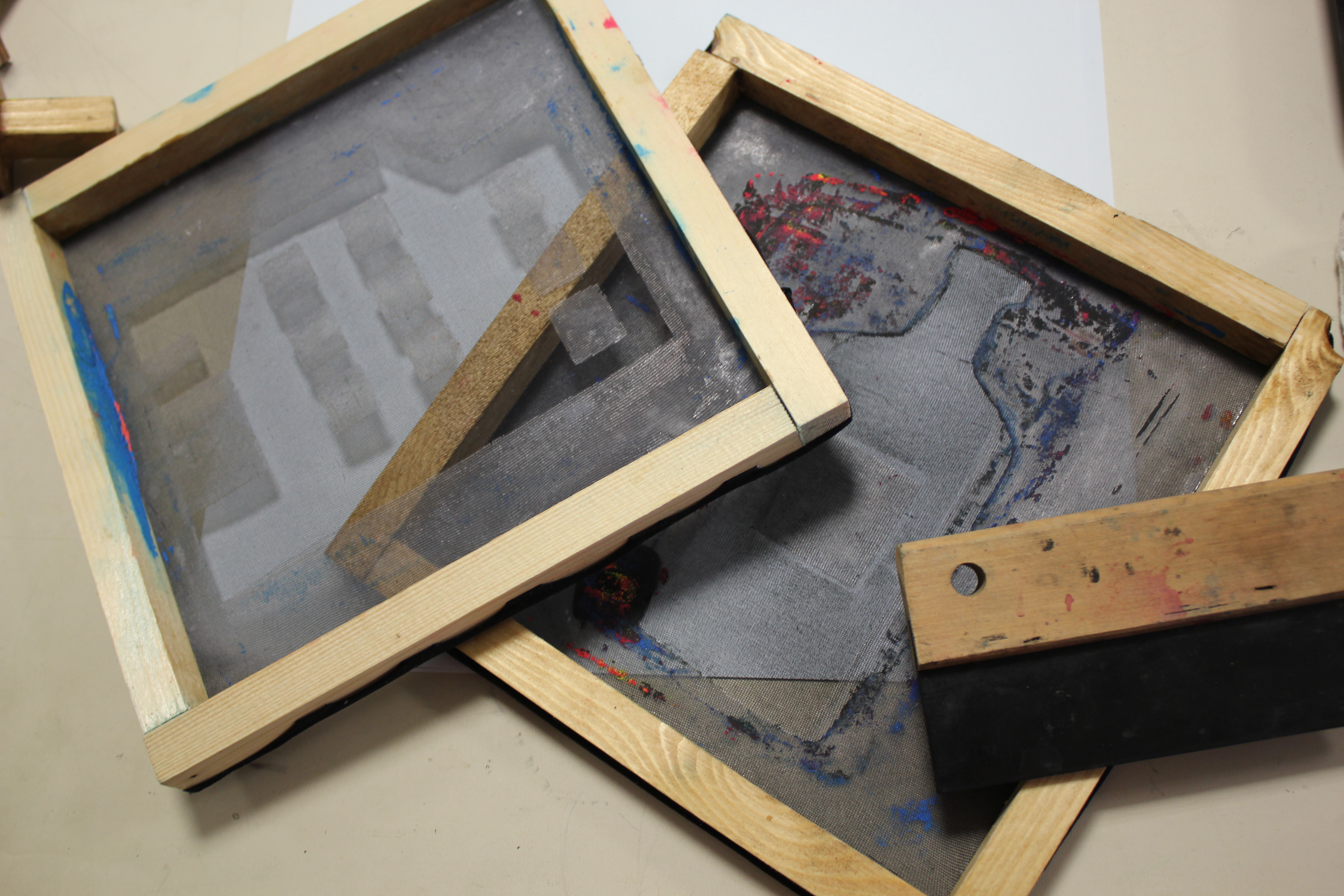 Ce kit a pu être testé une première fois au cours d’une soirée de lancement à la cinégraphie, un petit atelier de sérigraphie au réformés pour la sortie du second numéro du chaudron, un des graphzines publiés par mon collectif. L’expérience a été interessante puisqu’elle a permis de souligner quelques écueils. Graphiquement, les productions sont peut etre un peu trop cacophoniques. Peut etre que cela tiens à l’utilisation trop pregnante de dessins ou tout simplement à l’usage d’un pannel de couleur trop étendu. Mais outre ces problêmes, le cadre ne s’y prêtait pas forcément puisque les participants venaient avant tout pour une expo. De plus, le thème que j’avais suggéré était sans doute trop englobant (« la ville c’est un peu large » ). En fait, peu d’entre eux ont réellement joué le jeu. Il aurait fallu les mettre dans une démarche spéçifique, leur dire qu’il venait pour ça. De plus peut être qu’il faut arpenter la ville et se confronter aux stigmates de la dépropriation pour pouvoir en parler avec plus d’aisance. C’est pourquoi j’ai voulu utiliser les mécaniques du jeu de piste pour ca. En proposant cela et en demandant au public de chercher des balises dans la rue, on le place dans une posture d’analyse de son environnement et bien qu’il soit pressé par le temps (parce que le jeu s’inscrit dans une temporalité d’une heure) on le rend plus attentif à son environnement que dans un trajet quotidien. Aussi, le but est de lui faire visiter des lieux spéçifiques qui eux-même induisent implicitement ces valeurs d’en commun, qu’ils soient des ateliers ou encore des points de rencontre et de médiation culturel voir contre-culturel.