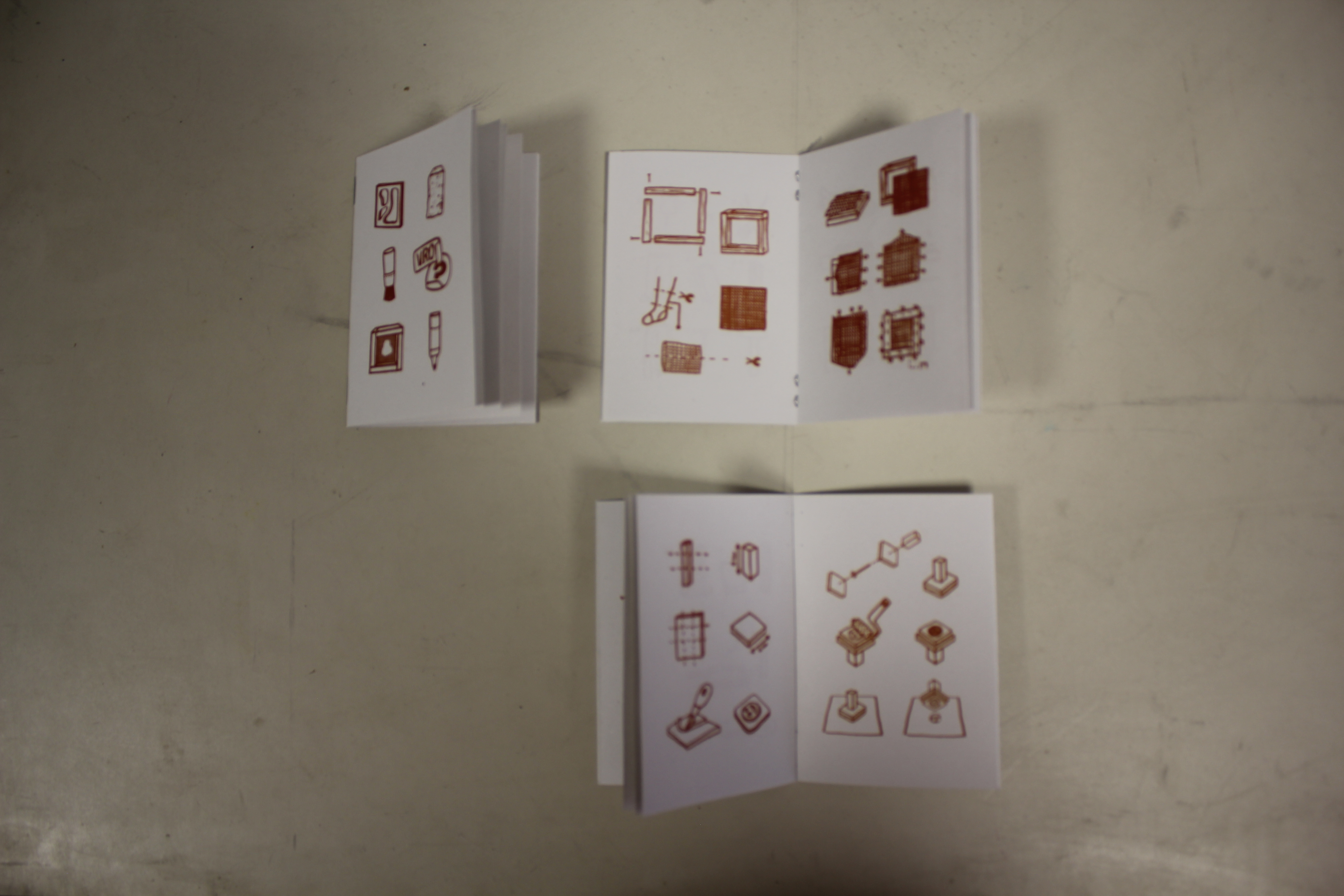 En ce qui concerne les différents outils, je voulais m’attacher à utiliser des procédés qui propose donc la reproduction sans trop de peine d’un répertoire de formes, de motifs, de pictogrammes, de lettres afin que chacun puisse s’exprimer le plus facilement possible. C’est pourquoi les normographes, la sérigraphie, les tampons et les stickers m’ont semblé être les procédés les plus appropriés. Prît isolément, ces signes manquent quelque peu d’interêt mais c’est une fois combiné qu’ils peuvent prendre une nouvelle épaisseur. Le but est de créer des syntagmes, des narrations pictographiques. Je me suis d’ailleurs beaucoup inspirer des isotypes d’Otto Neuraat pour créer mes formes.