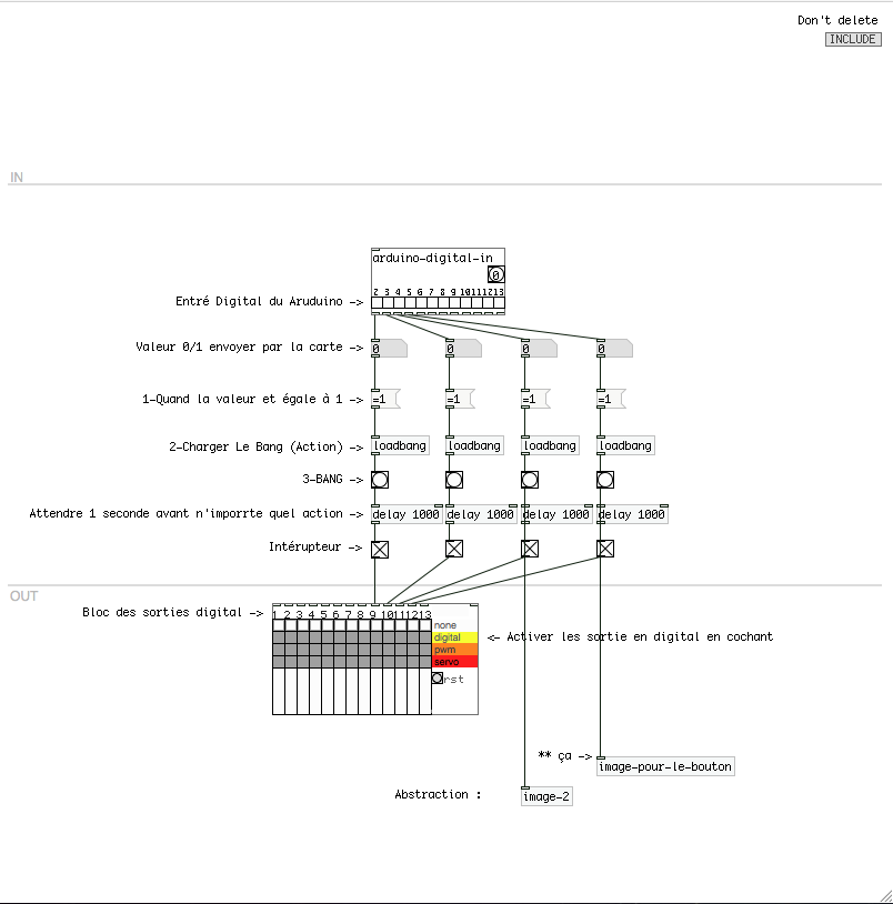 Patch pure data malinette : Télécharger les patch (à coller dans malinette/projects/default). Une fois la malinette ouverte, cliquer sur projet → bouton pour lancer le patch.