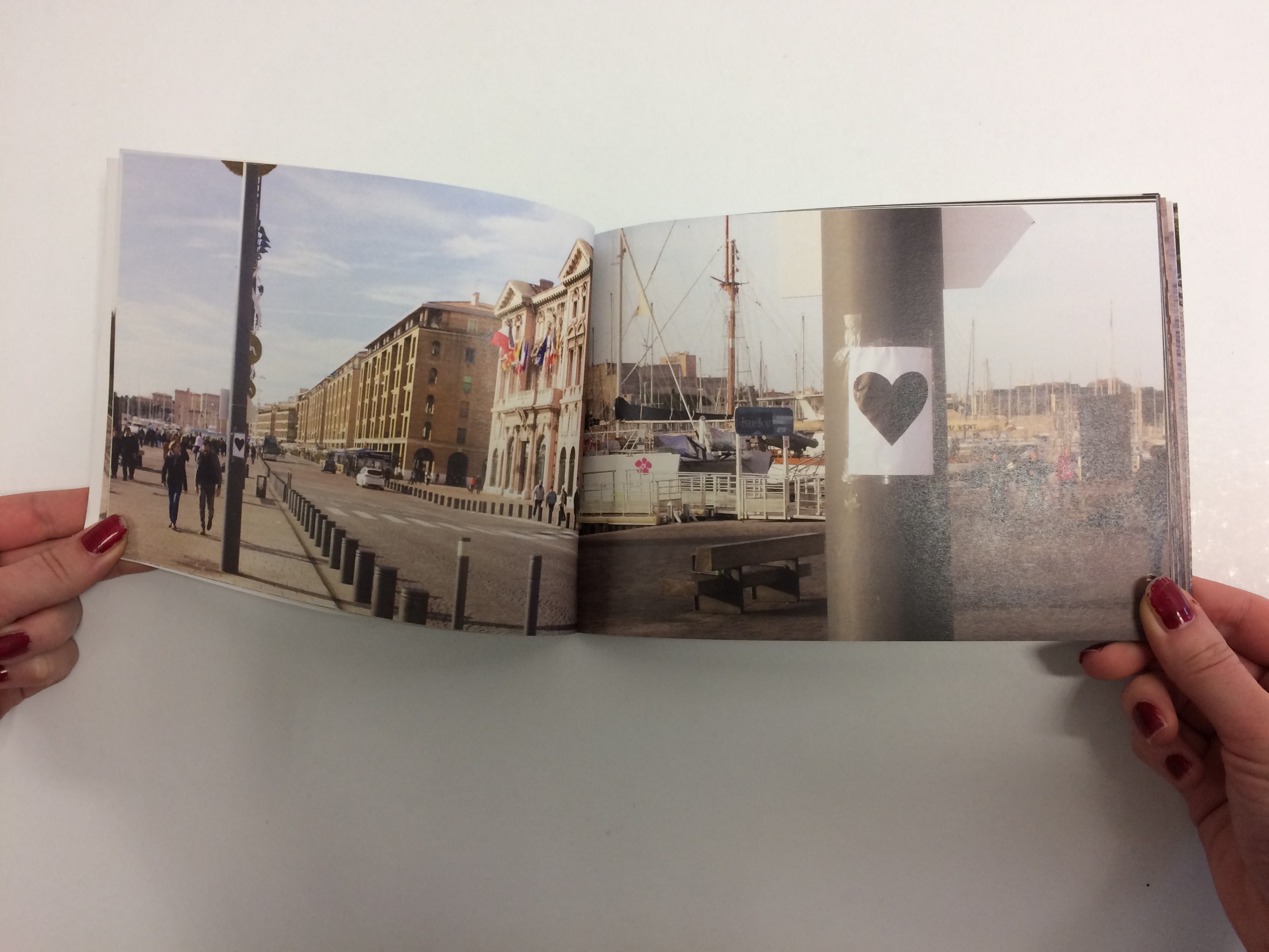 J'ai déclaré mon amour en réalisant un itinéraire. Je suis partie de la gare St Charles car c'est le premier lieu que l'on découvre en arrivant à Marseille. L'esplanade de la gare nous offre un paysage de la ville avec la Bonne mère et le soleil. Je termine ce parcours par Notre Dame de la Garde, lieu emblématique et symbole de Marseille. Je finis par “crier” mon amour à la ville puis son point le plus haut. Entre temps, nous passons par des lieux plus intimistes et personnels tels que le panier ou encore noaille…