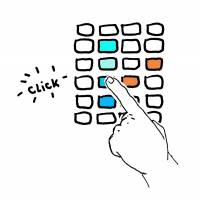 Une première pression sur la touche bleue active un calque (il y en a 4 au total), et l’on peut ensuite choisir le sample que l’on veut lancer avec l’une des touches oranges de la ligne.