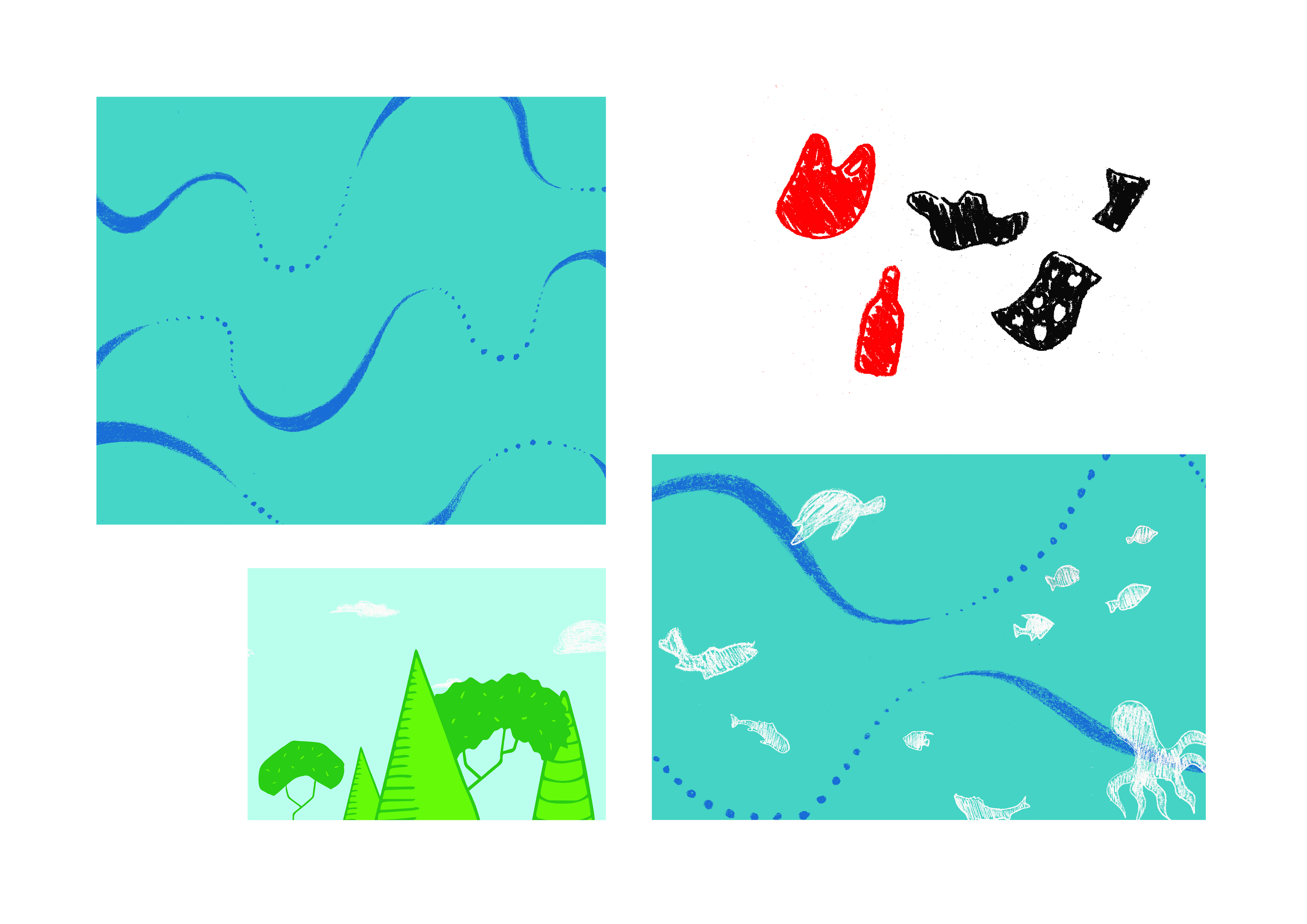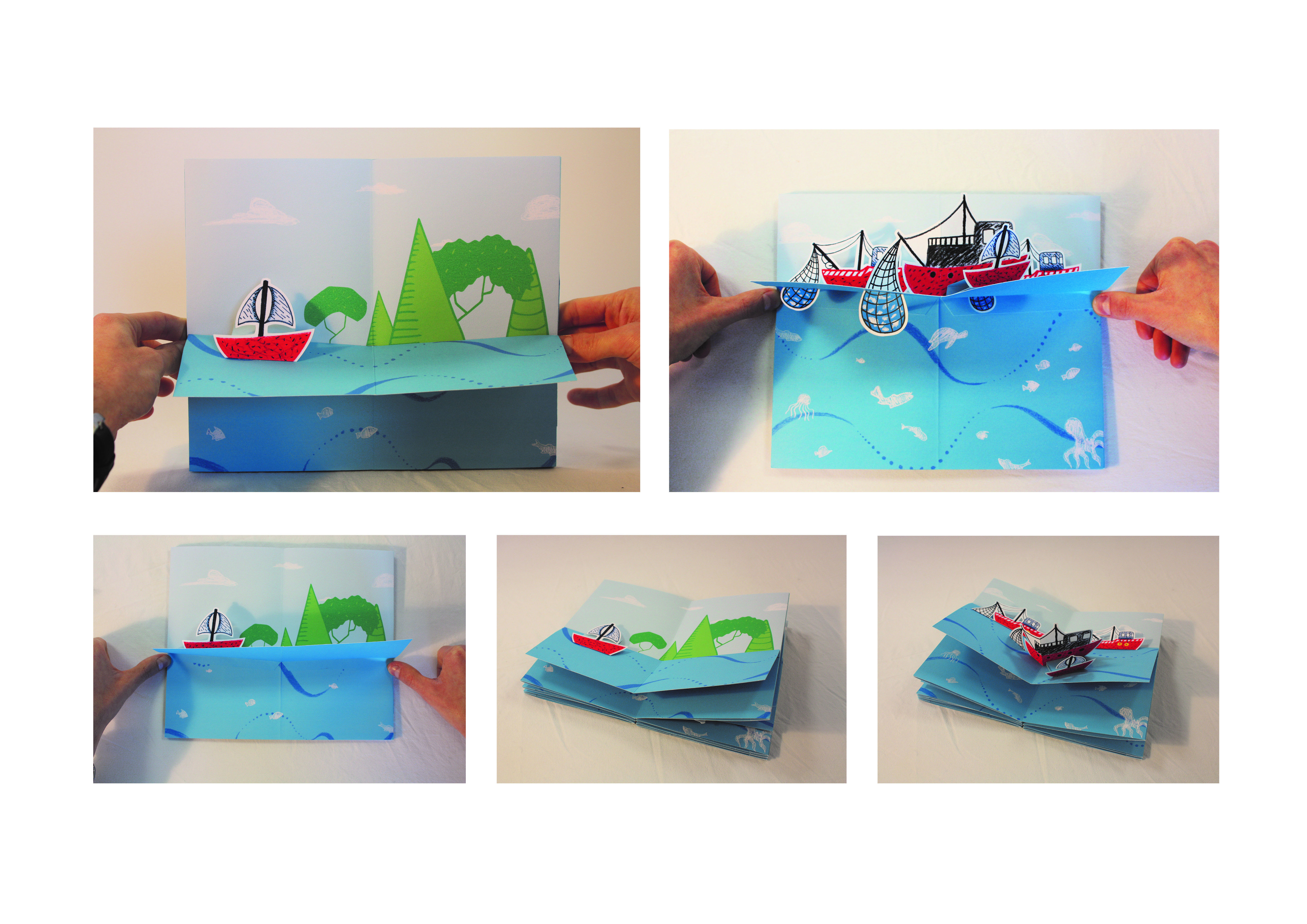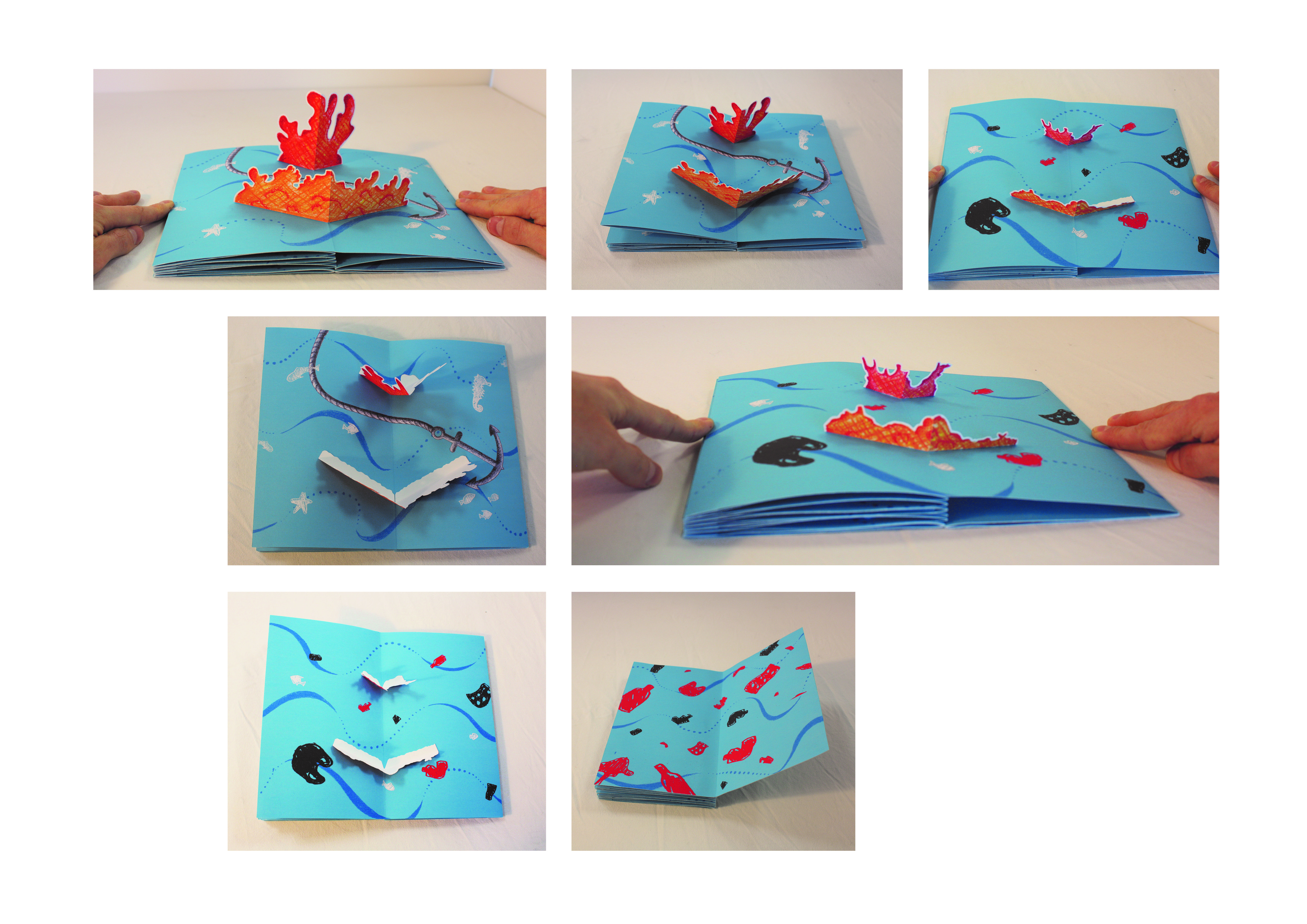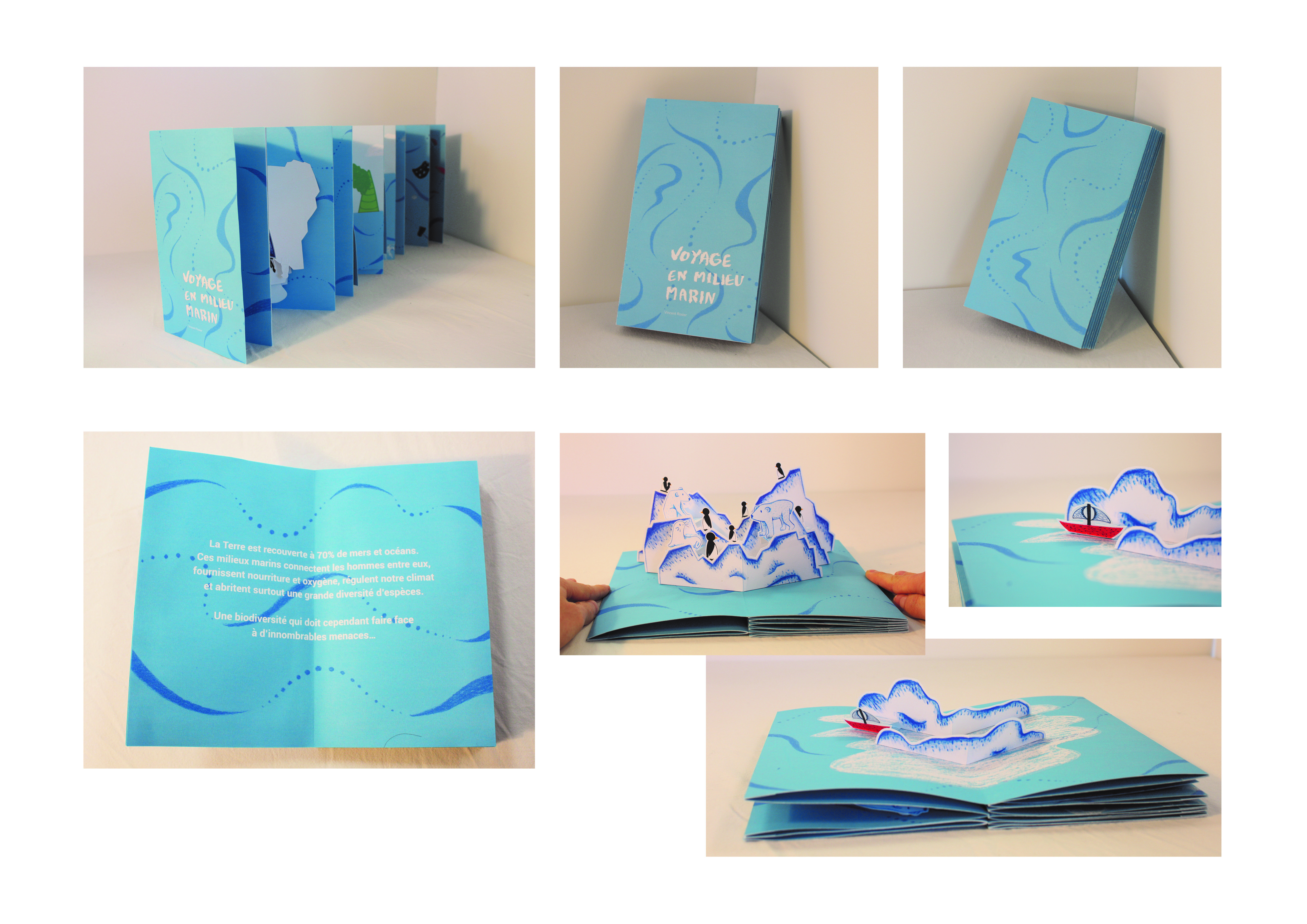 Pour le projet du Pop-Up augmenté, l’idée est de proposer plusieurs cartes formant une narration. L’objectif est de sensibiliser, de faire prendre conscience de la situation actuelle, des impacts subis par la biodiversité de par nos actions. Ainsi, cette narration mettrait en scène les différents problèmes actuels liés au milieu marin : fonte des glaces, hausse du niveau des mers et océans, surpêche, acidification, réchauffement de la mer, disparitions de zones et espèces marines.