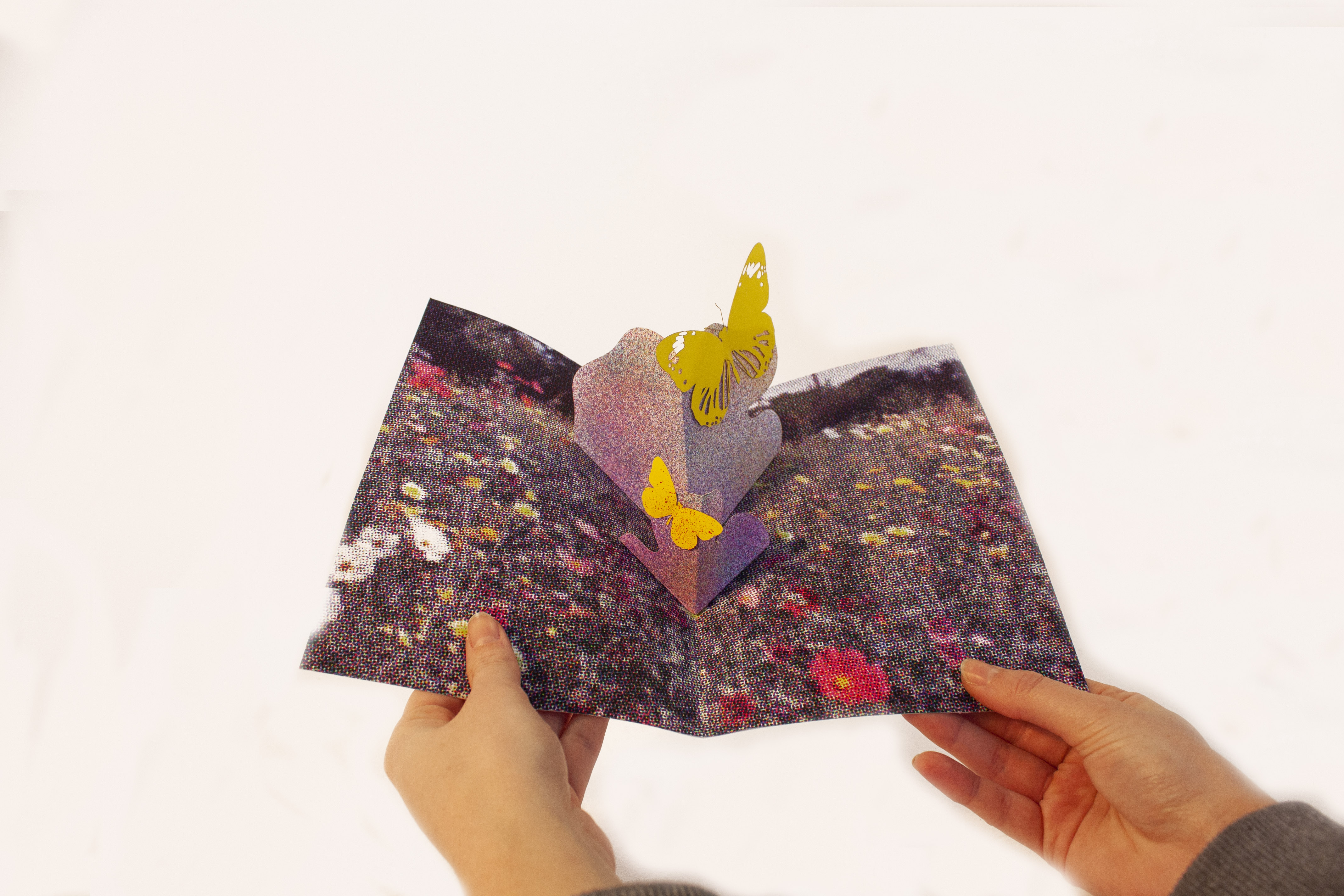 Mon projet, Acid biodiversity, se présente sous la forme de cartes pop-up indépendantes à manipuler. Le choix de trames colorées et de formes plus ou moins abstraites pour créer une biodiversité attractive pour l’oeil, presque tendance et à la fois chimique.