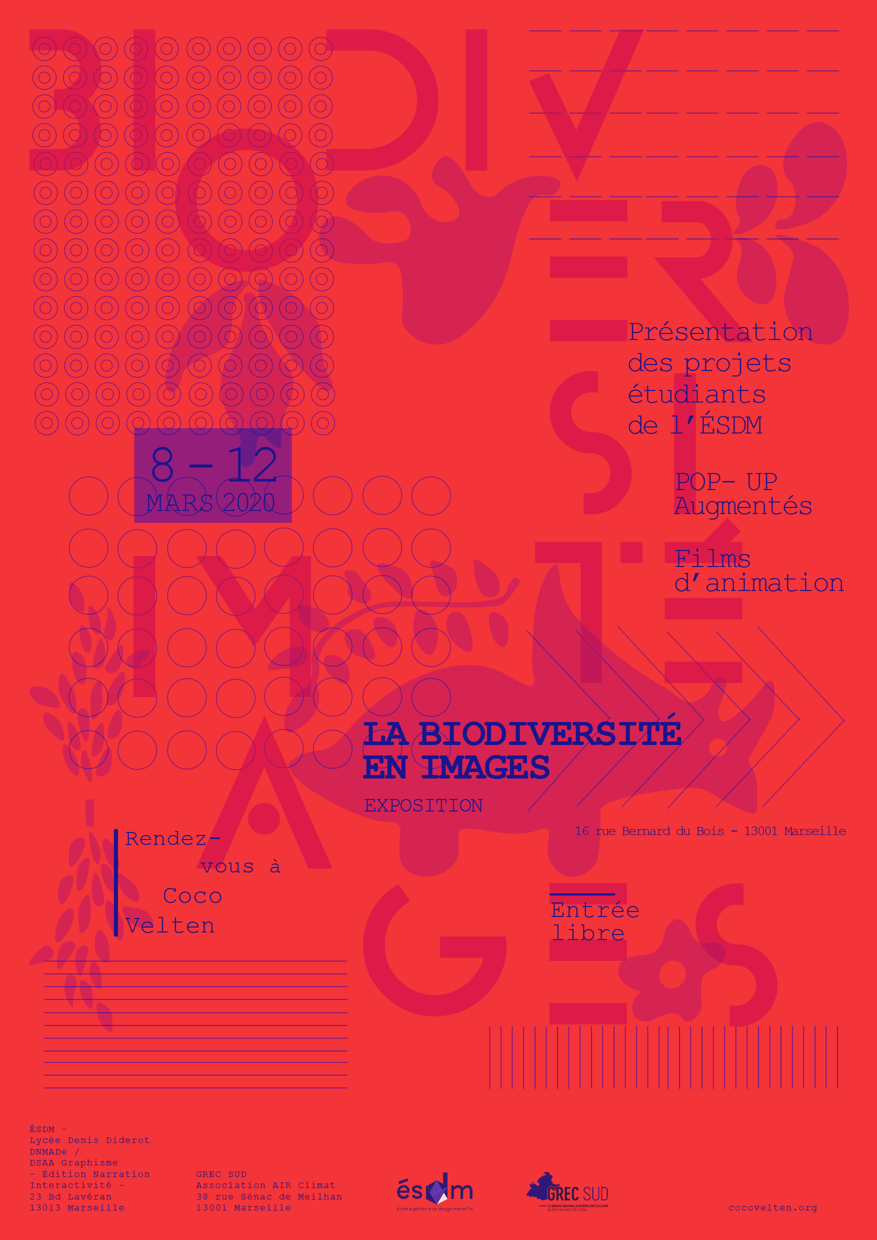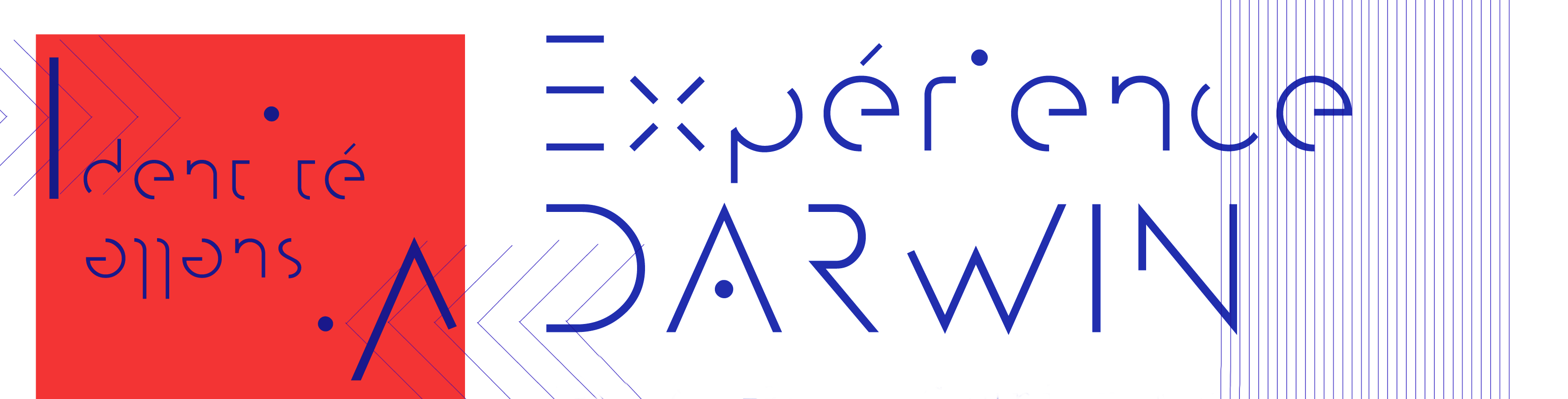 L’expérience Darwin fait le constat de la biodiversité comme étant une entité qui fait lien entre les différents domaines du vivant. Cependant, notre société actuelle connaît un désintérêt pour cette dernière ; souvent mise de côté dans nos pensées du quotidien nous lui tourons le dos, faisons abstraction. Peut-être est-elle trop complexifié ; mystifier même ? Quoi qu’il en soit nous avons crée des droits sur elle, le droit d’en disposer comme bon nous le semble. Et pire, nous nous donnons le droit de la détruire. Un paradoxe qui nous nuit. La biodiversité est au cœur même de l’humanité, en effet, elle n’est pas seulement arbre, plante, animaux, elle est aussi soleil, eau, Homme, est l’homme est composé de 60 % d’eau ! La priver de liberté ou la détruire, c’est avant tout attenter à l’Homme. C’est pourquoi, c’est un devoir commun de la protéger. Mais pour vouloir/pouvoir protéger la biodiversité, il faut d’abord prendre conscience que celle-ci nous entoure. En effet, tous les éléments qui composent la planète terrent (même ceux crée par l’Homme) sont issus des mêmes forme de vie primitive qui se sont développés il y a 550 millions d’années. On peut donc dire que la biodiversité en plus d’unir les espèces s’inscrit dans le cadre général de la vie au sens propre. Elle est intégrante à chaque espèce, dont l’homme. Sans biodiversité, pas d’humanité… C’est pourquoi, je retranscris graphiquement cette généralité avec un propos formelle se rapprochant de la forme cellulaire et de la géométrisation afin de rappeler ces formes primitives.