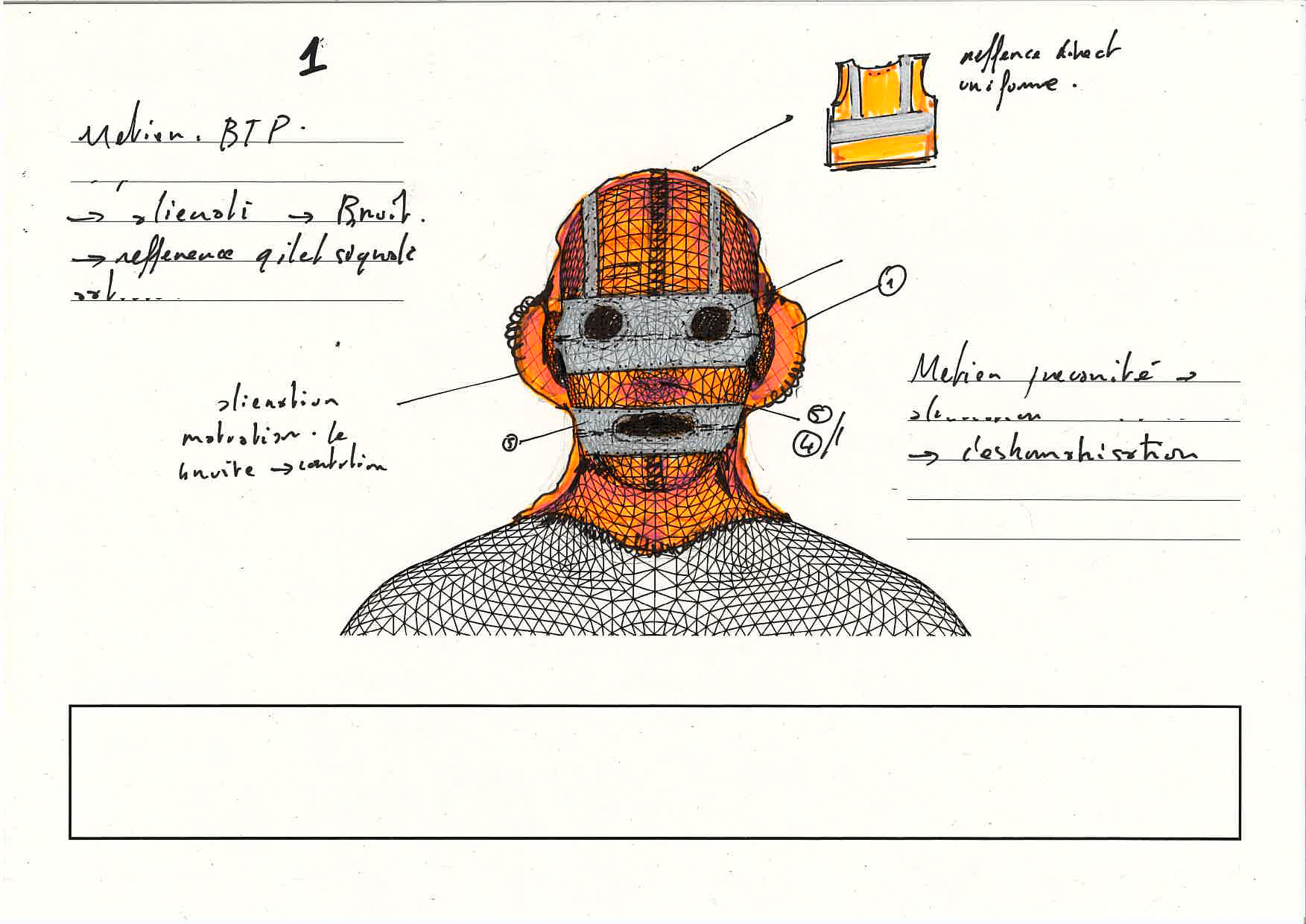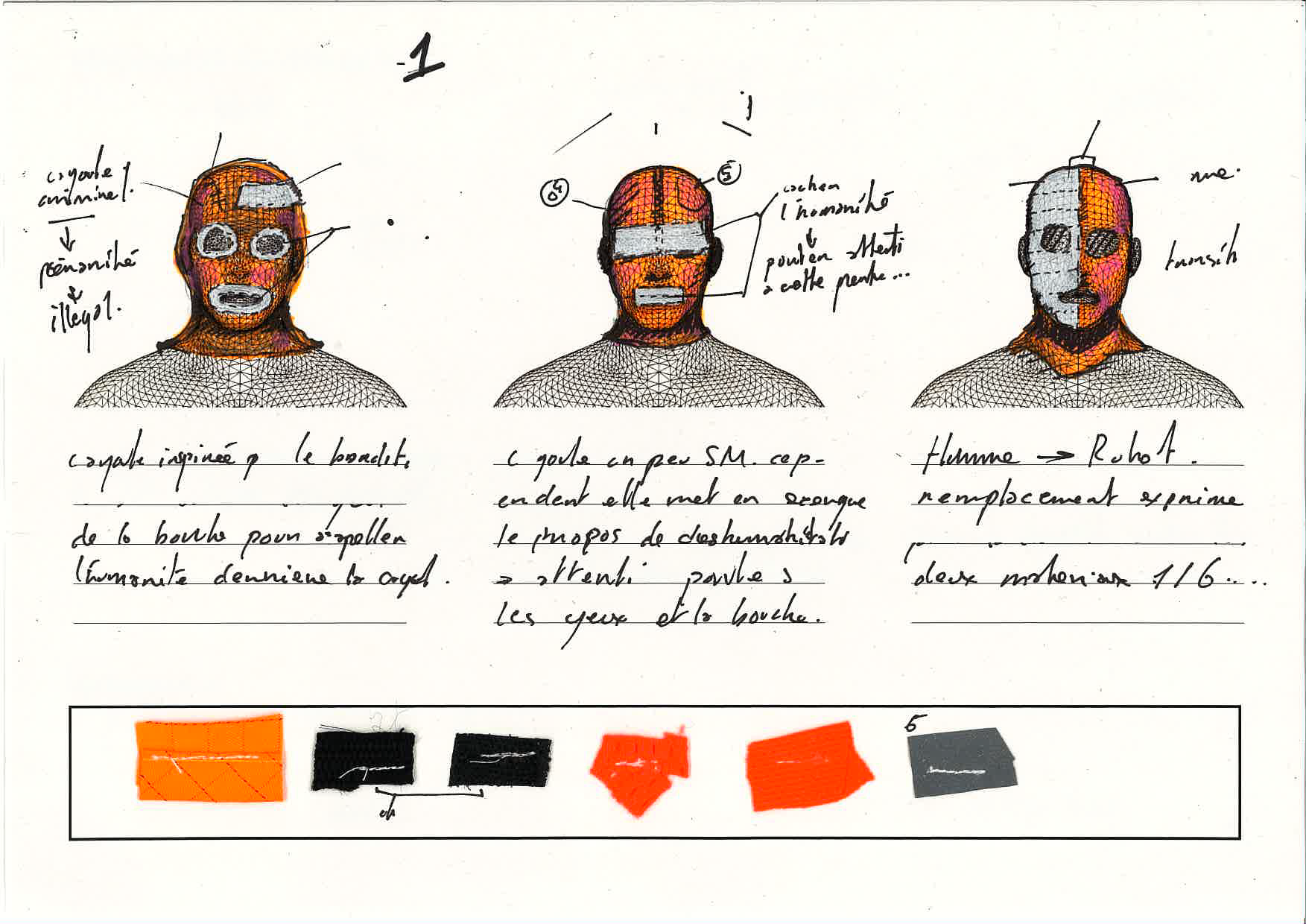 - Materiaux de récupérations ( vêtement de chantier, pull de sécurité, uniforme..) pour me permettre de construire les cagoules