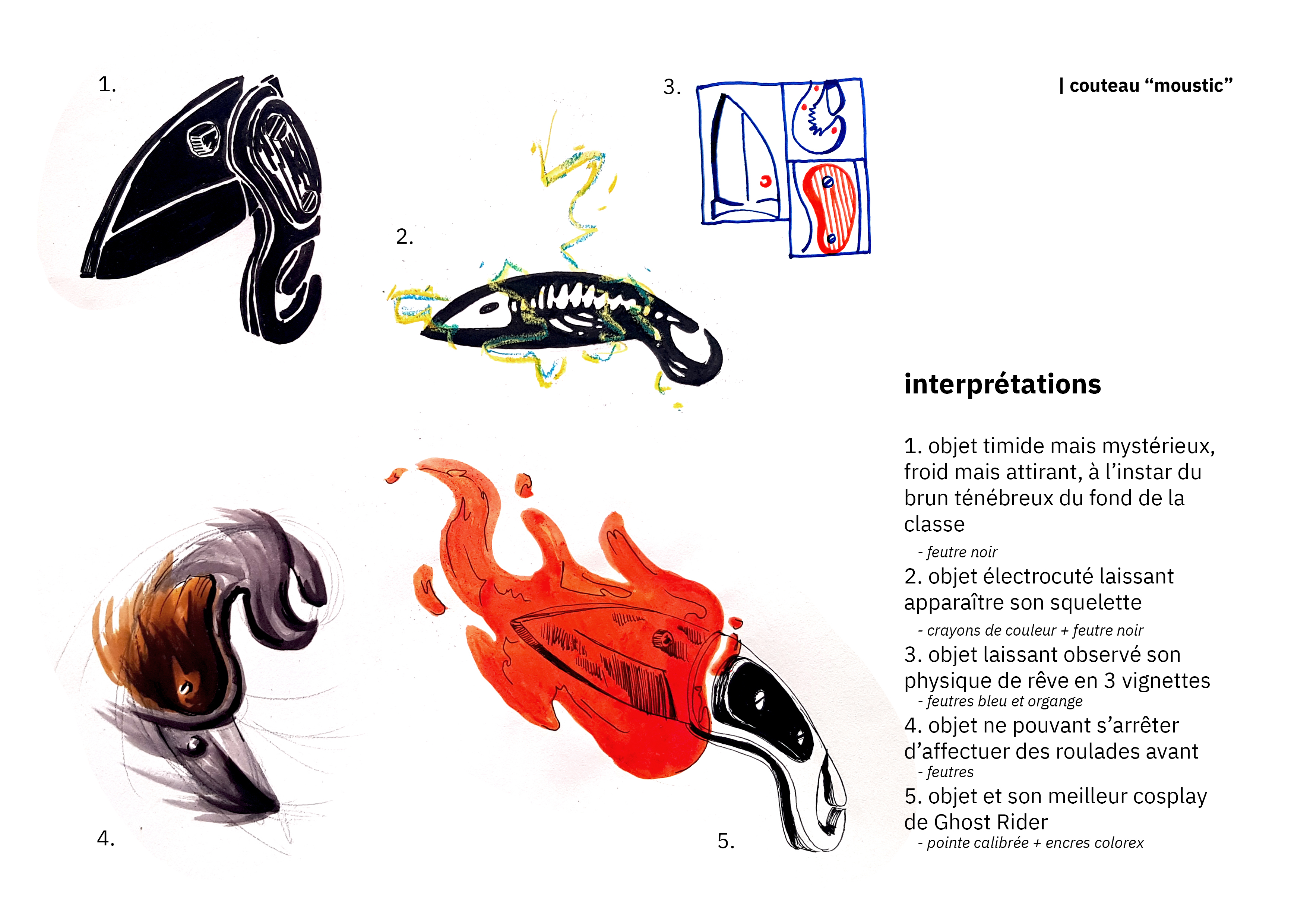 La recherche d'un style graphique s'associe à la recherche de la composition de mon image. En effet je cherche à raconter une scène en une image, sans découper le récit en différentes cases.
