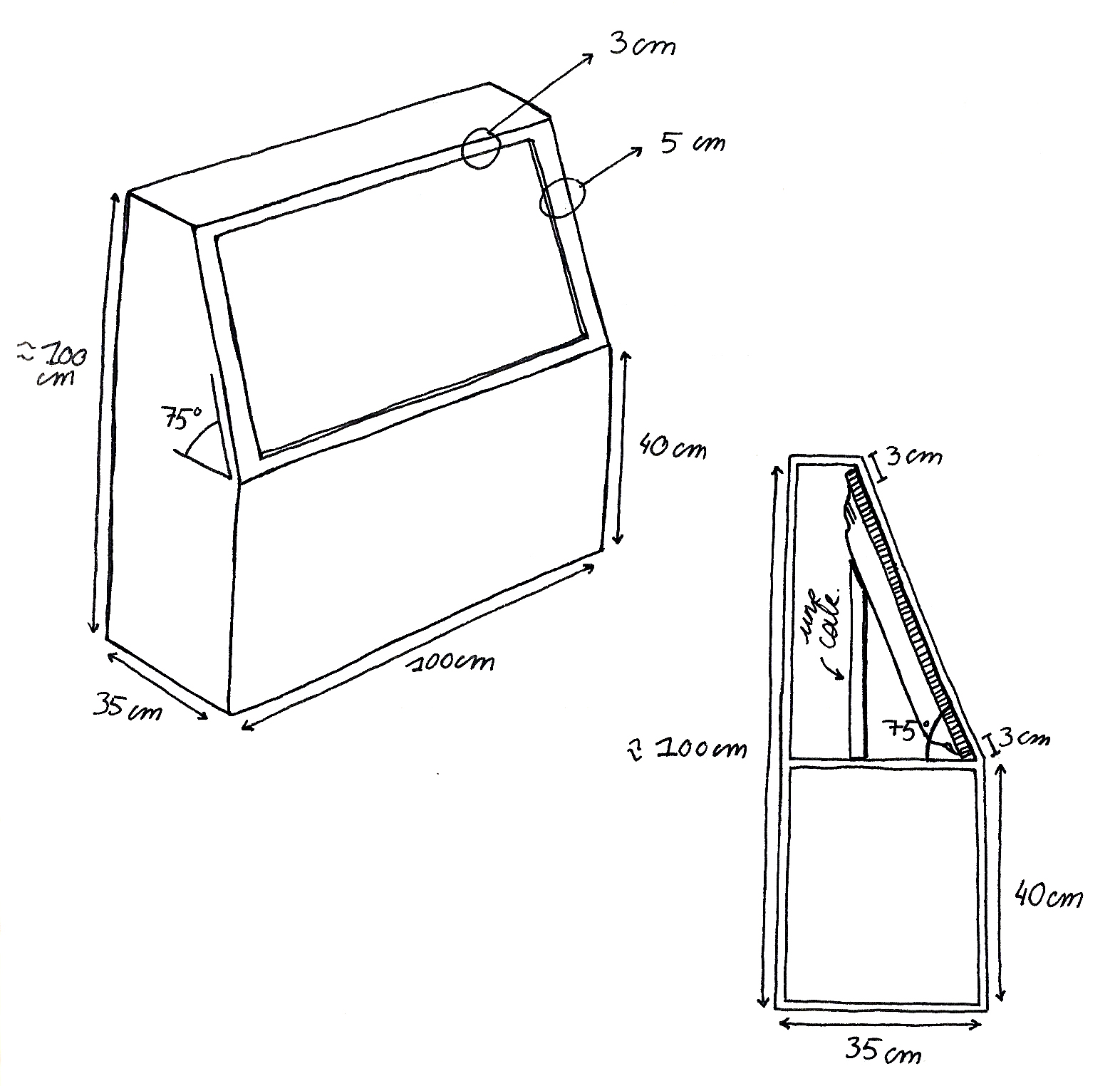 Plan de la réalisation d'un meuble, qui soutiendra l'écran, tel un pupitre