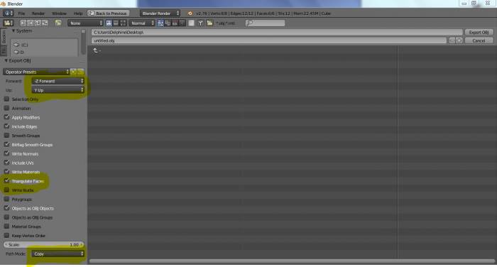 Triangulate: très important, à ne pas oublier, car sans ce paramètre, votre réalité augmentée sur Processing ne fonctionnera pas. Ce paramètre permet de triangler l'ensemble de vos faces, il peut également baisser le poids de votre ficher.