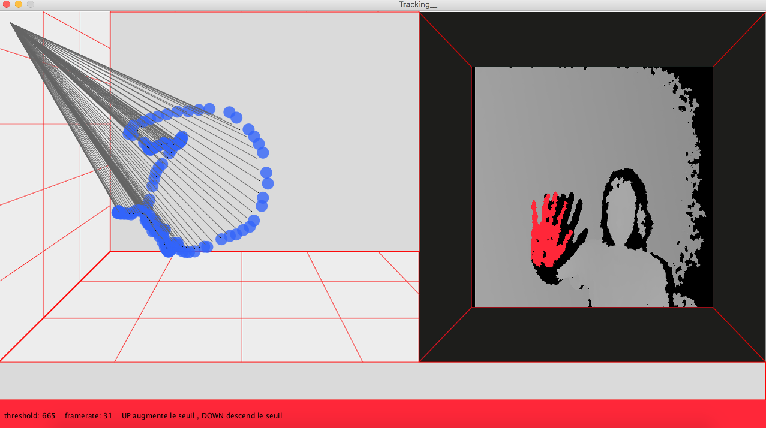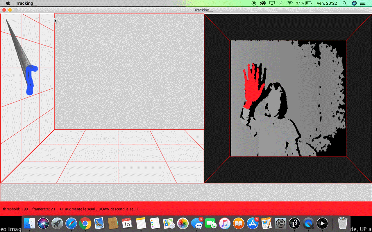 Cette classe crée par Daniel S permet de créer un traqueur, ce traqueur définie une zone la plus proche détectée à l'aide du “treshold” le seuil de profondeur. Cette zone sert à définir deux points, celui qui m'intéresse et le second, c'est celui qui définie le barycentre de la zone détectée. Il est le point de référence a partir du quelle la traduction du mouvement capté vas se faire.