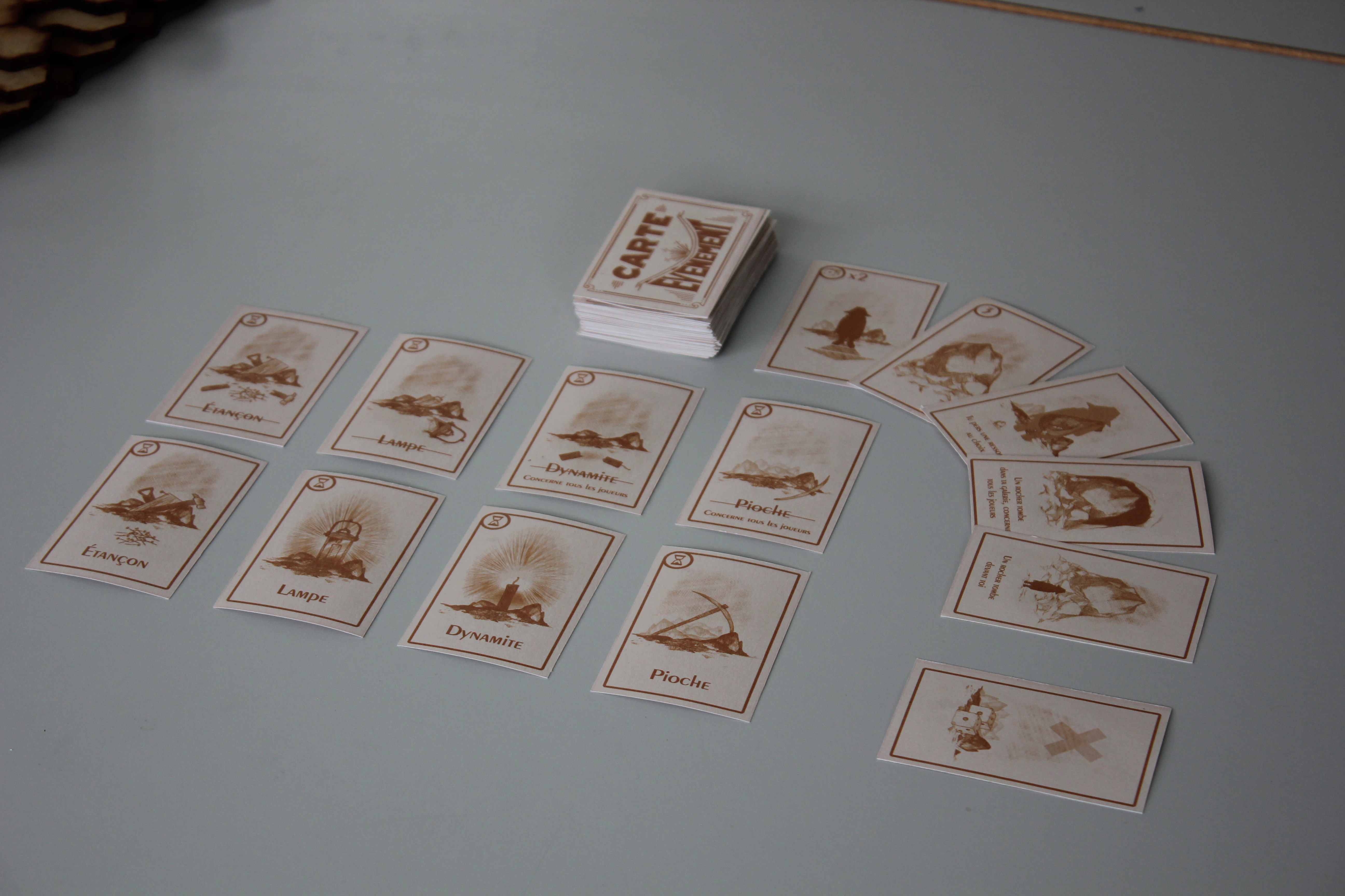 La compétence Lumière : Permet un bonus de déplacement. La compétence Piocheur : Permet un bonus de déplacement. La compétence Fortificateur : Permet d'empêcher que des éléments roches se mettent sur le chemin que celui qui a la compétence, a creusé. Cet étançonnage se matérialise sous la forme de deux Étançons qui sont mises au début et à la fin du chemin en question. Si une personne gagne la compétence en plein milieu d'un tunnel, le début de cet étançonnage se fera à cet endroit. Et si une personne perd la compétence durant sa progression, la fin de l'étançonnage se fera également à l'endroit où le pion se trouve. Il se peut ainsi que plusieurs étançons soient placés à différents endroits sur le plateau de jeu. La compétence Dynamitier : Permet de détruire un élément de roche ou de déplacement qui peut se trouver sur son passage. Si un joueur possède une seule carte compétence acquise ou compétence temporaire de dynamite, alors il peut détruire tous les rochers tant qu'il ne pers pas sa carte.