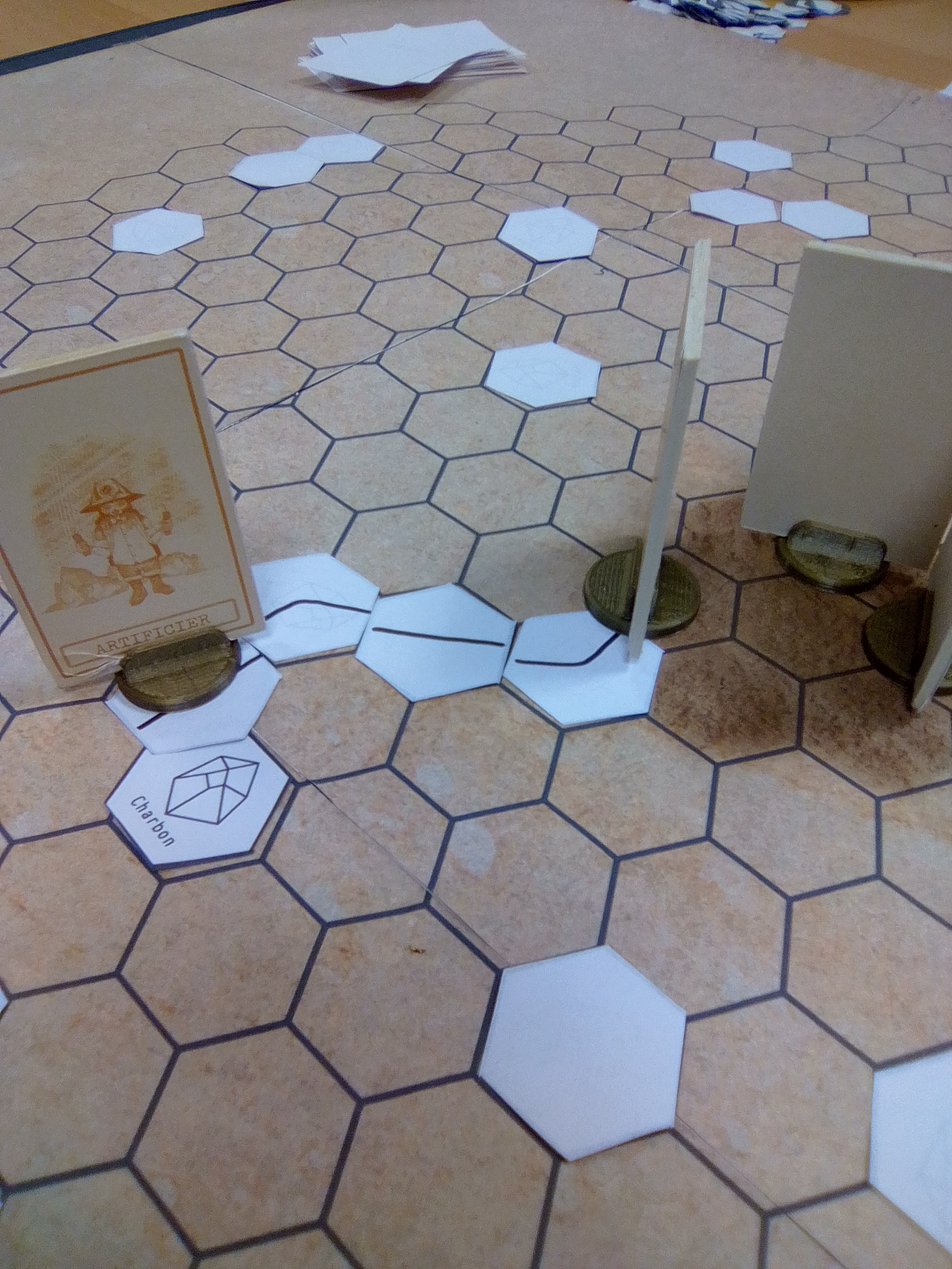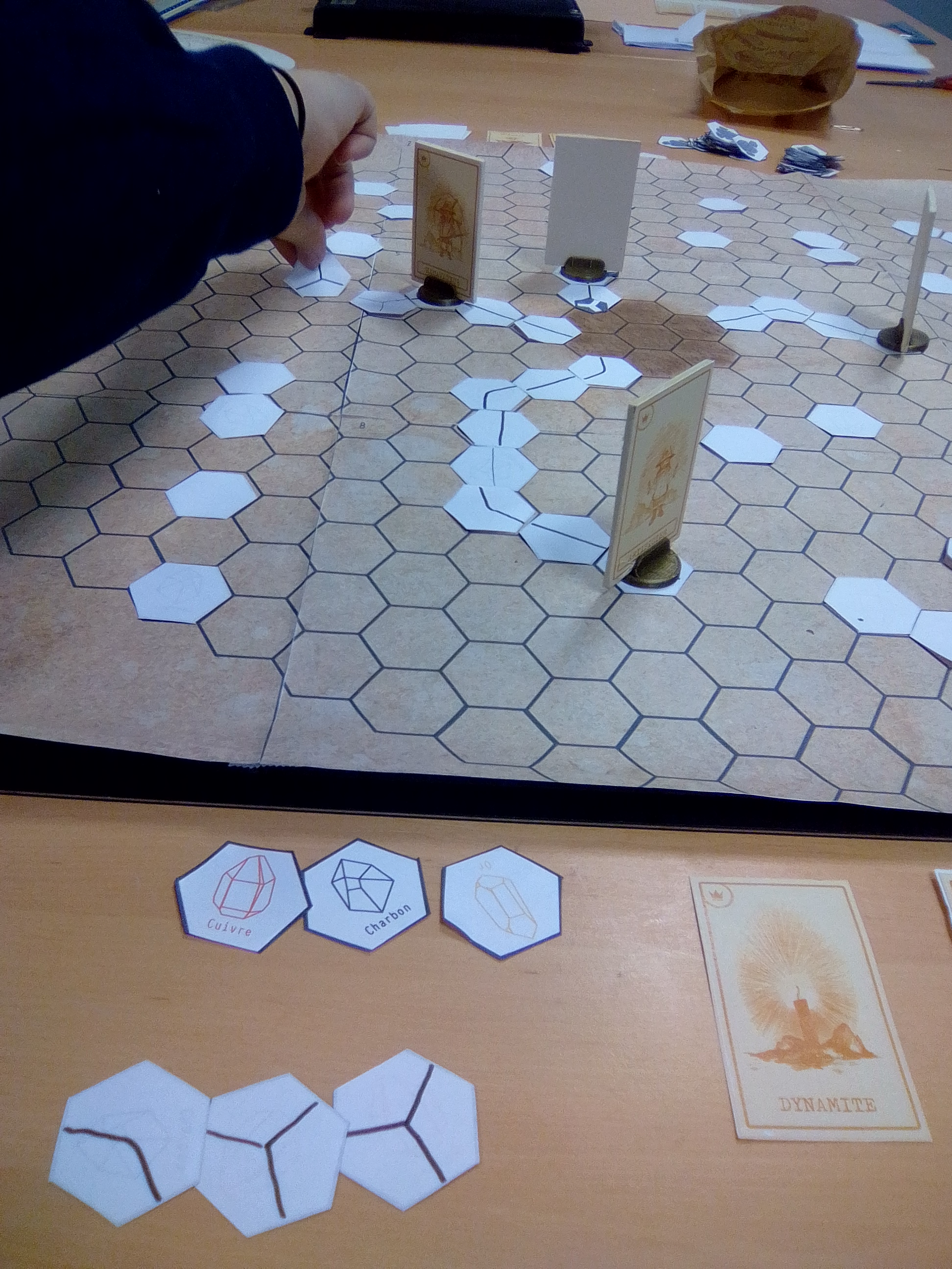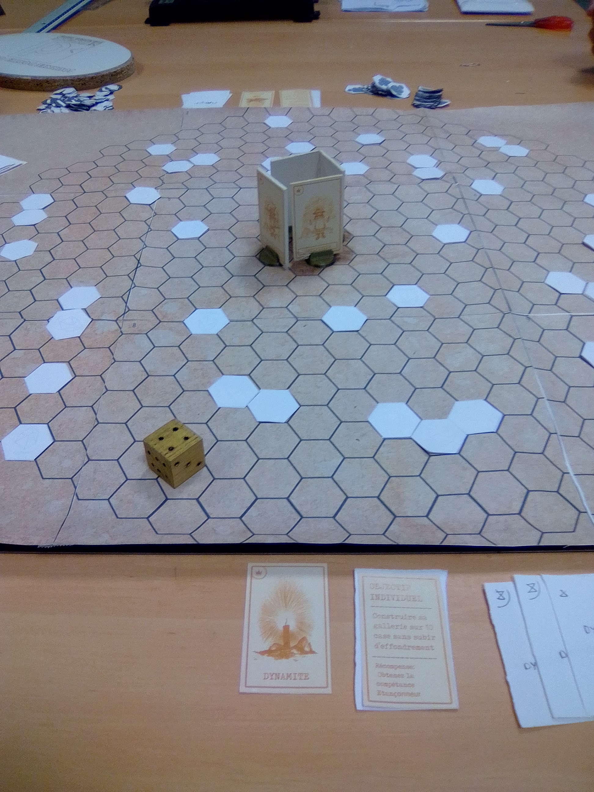 Donc, en fonction du chiffre obtenu, le joueur pioche un certain nombre d'éléments de déplacements. Il peut librement décider de ceux qu'il va placer sur le plateau de jeu, ainsi que de ceux qu'il peut conserver pour des tours prochains. Le pion du joueur avance en même temps que le tunnel se creuse.
