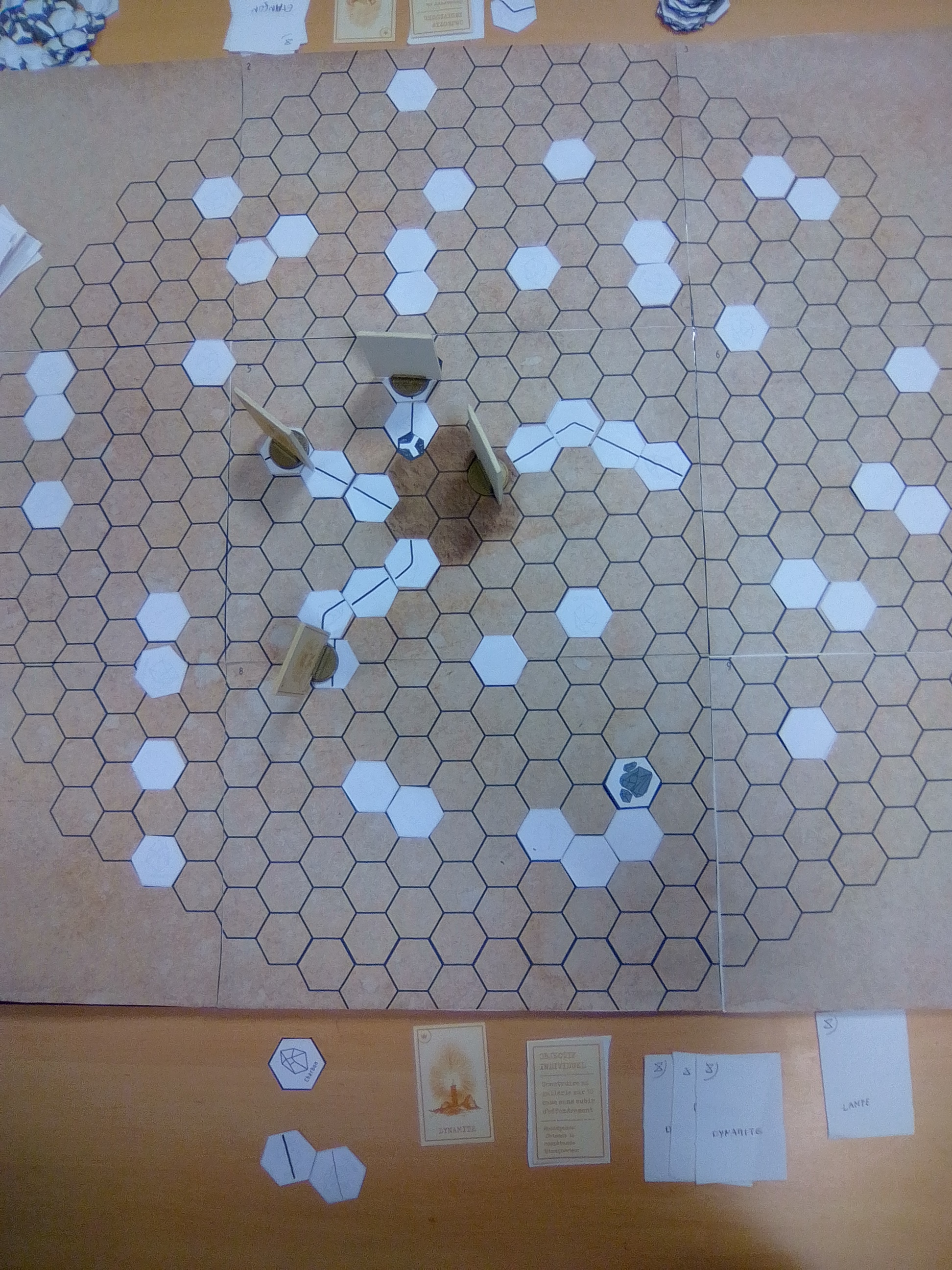 A chaque fin d'un tour complet, un nouvel élément de roche est mis en place par les joueurs de manière aléatoire sur l'ensemble du plateau de jeu. Cela joue comme un compte à rebours, pour pousser les joueurs à accomplir les différents buts le plus vite possible.