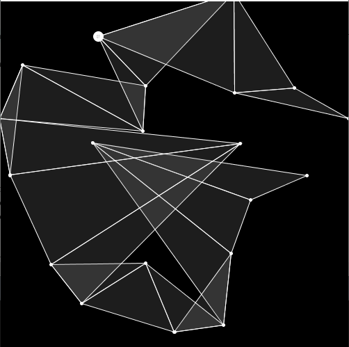 Production d'une forme aléatoire comportant plusieurs point modulable. L'utilisateur interagir peut déformer cette forme en déplacement ses points à l'aide de sa souris.