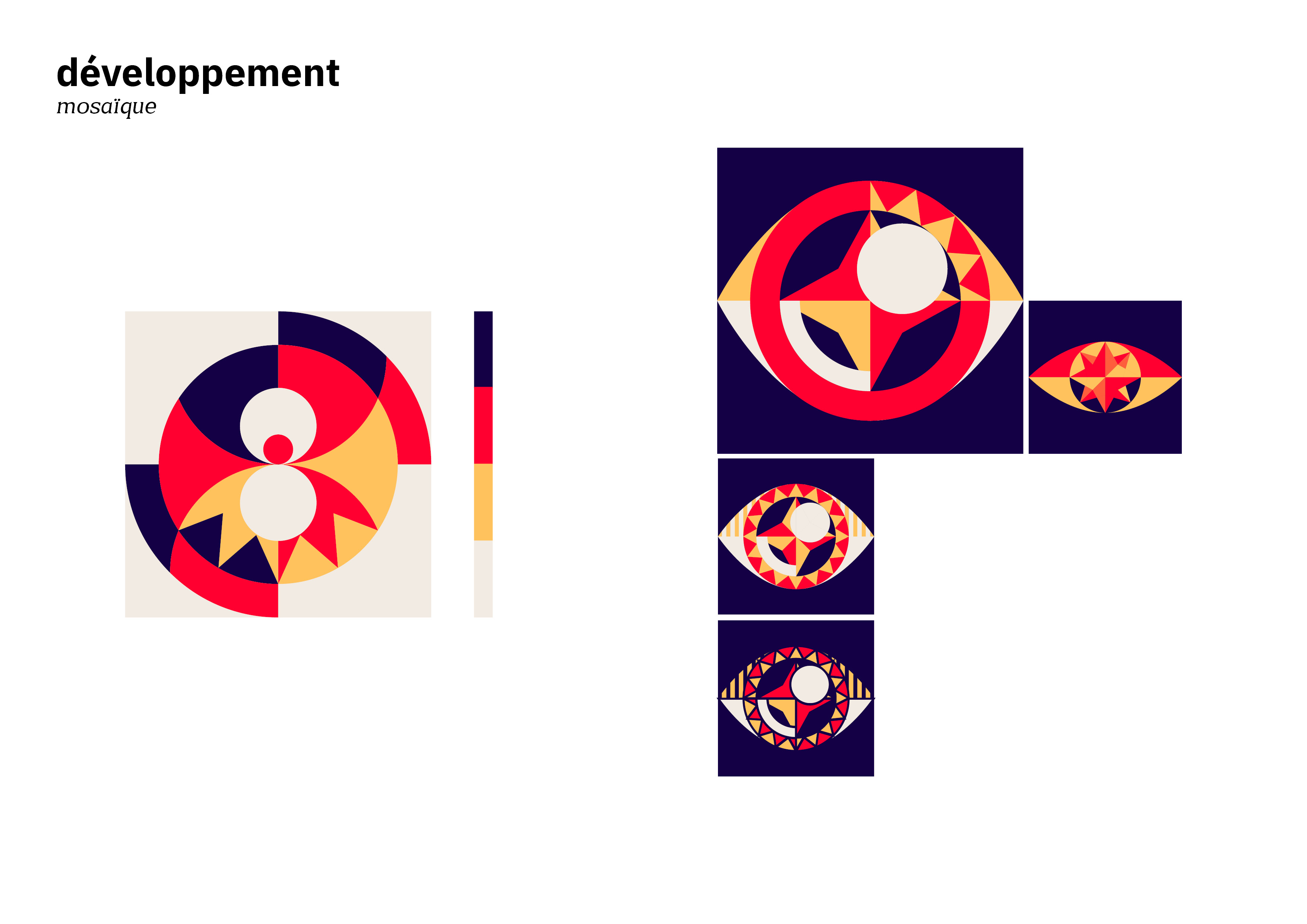 L’assemblage de diverses formes géométriques ont permis de styliser chacunes des scènes et éléments pour en extraire des modules singuliers.
