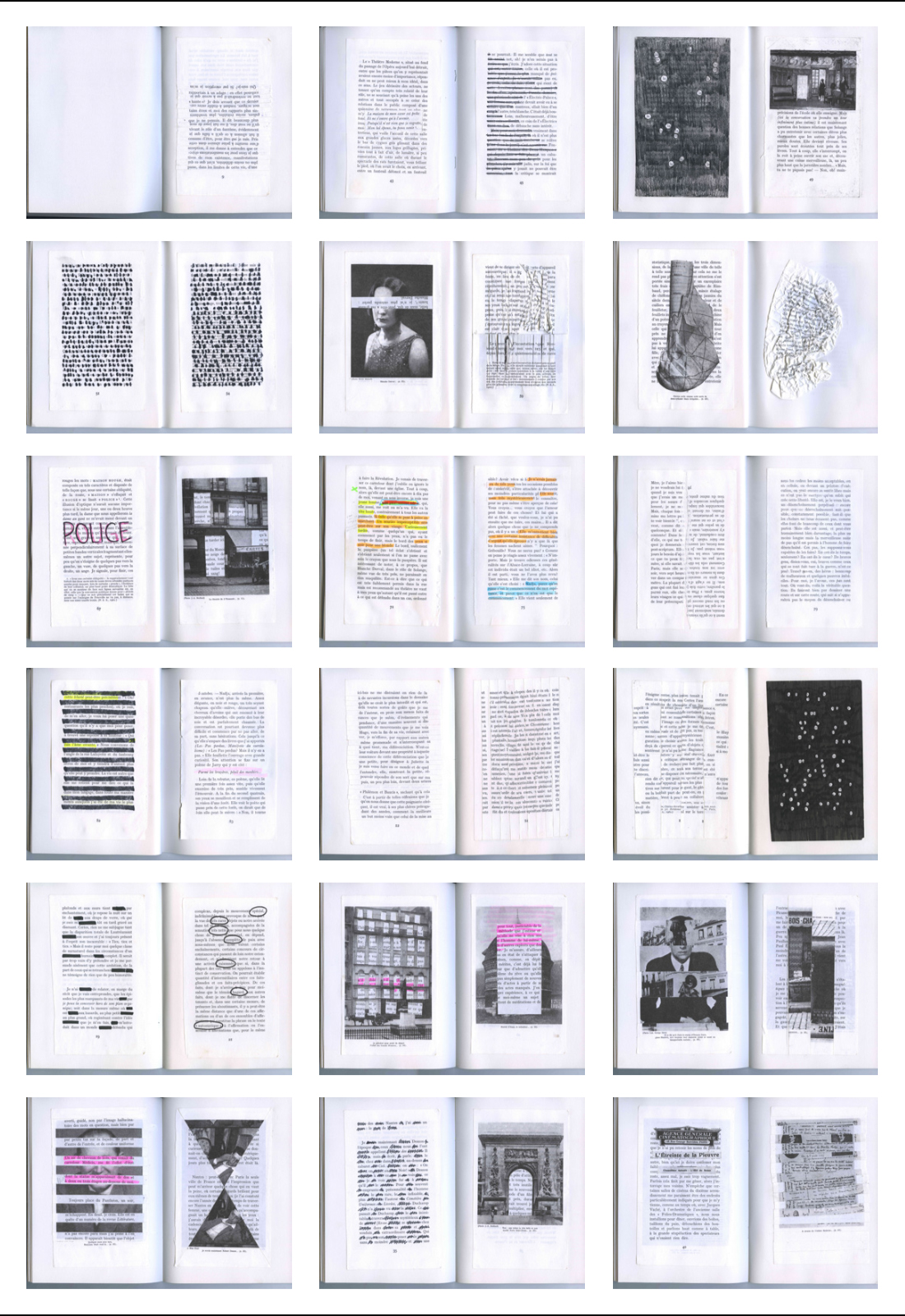 À travers le livre d’André Breton Nadja, j’expérimente un nouveau support et questionne la contrainte de la page. Du recouvrement à l’effacement, j’essaye de jouer avec les mots, les pages et réinventer une écriture visuelle. Il s’agit d’une réflexion sur le concept même du livre : de l’écrit aux arts plastiques, du lire au voir, jusqu’à ne plus rien voir.Le hasard intervient dans la déconstruction de chaque page et sa recomposition aléatoire qui forme de nouvelles phrases, de nouvelles juxtapositions de mots, d’images.