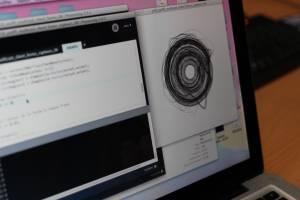 Nous avons choisi d'intégrer un capteur de pression à notre production pour appuyer notre discours. Il permet de contrôler le diamètre de notre forme. C'est-à-dire que plus l'utilisateur appuie sur le capteur, plus le diamètre de la forme augmente. Par ce procédé, l'individu est confronté au geste automatisé et répétitif tandis que la machine est maîtrisé par ce dernier. La relation homme-machine devient étroitement liée.