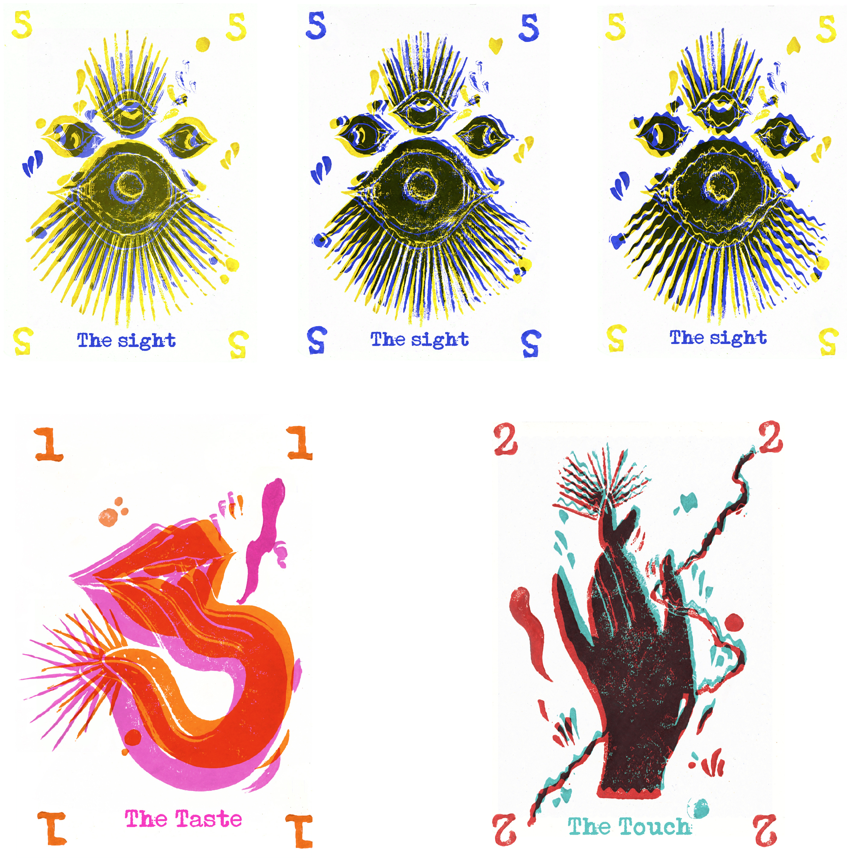 Création d’un série de cinq cartes autour des cinq sens : the taste, the see, the smell, the ear and the touch.