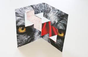 Passer d'une forme linéaire à une forme 3D. Mon idée ici est de réduire le conte aux cinq temps forts que j'ai mentionnés ci-dessus et de les articuler sur un même support. Il s'agit également de mettre en œuvre le rapport entre le bien et le mal. Le conte devient une construction tangible à manipuler, à plier, déplier, couper… dans le but de réintroduire la dimension orale par le fait que les enfants vont faire des commentaires sur ce qu'ils imaginent, sur ce qu'ils comprennent de ces visuels plus ou moins détaillés qui ce trouvent sur les supports.