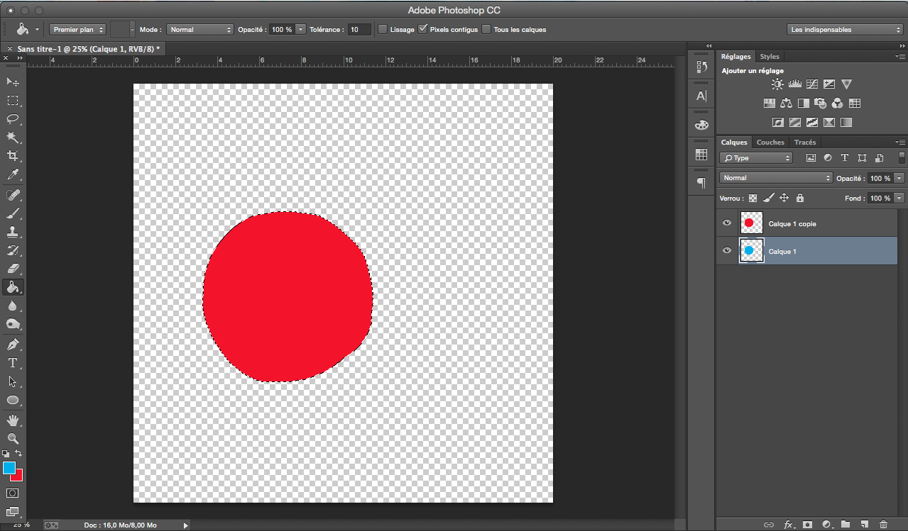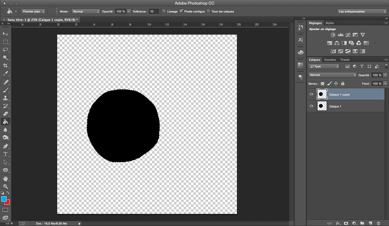 Exemple d’application simple avec une forme noire sur Photoshop: Créer la forme, dupliquer le calque