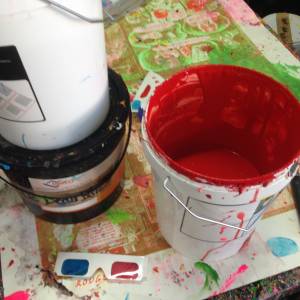 L’astuce est de préparer ses couleurs avec les lunettes aussi: en fermant un œil, regarder à travers le filtre cyan, l’encre cyan doit disparaitre et la rouge apparaître noire, et inversement à travers le filtre rouge.