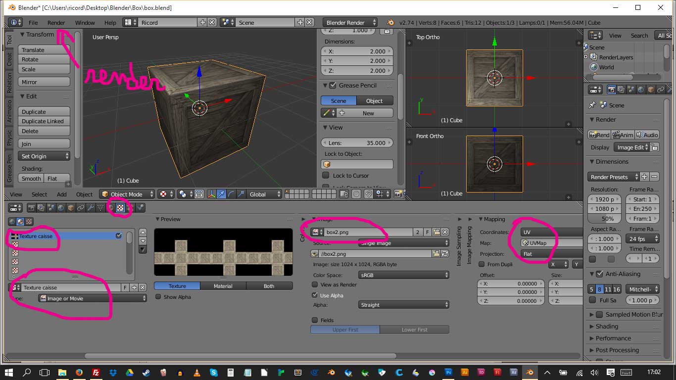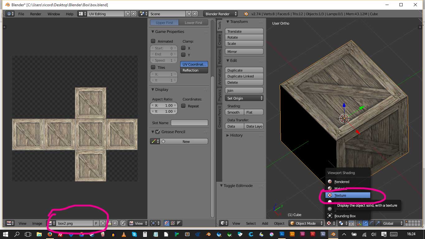 Une fois la carte UV (UV map) dépliée, il s'agit d'envelopper le cube.