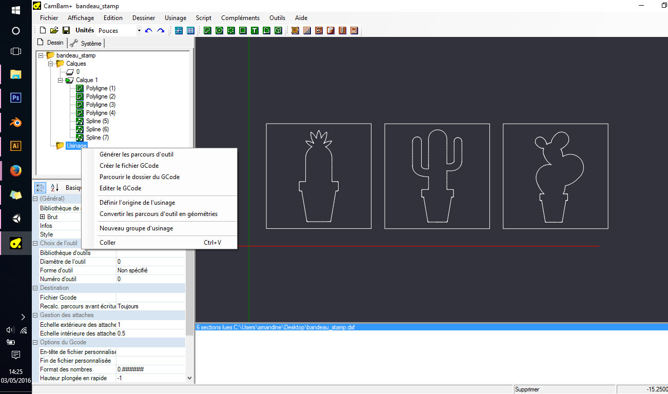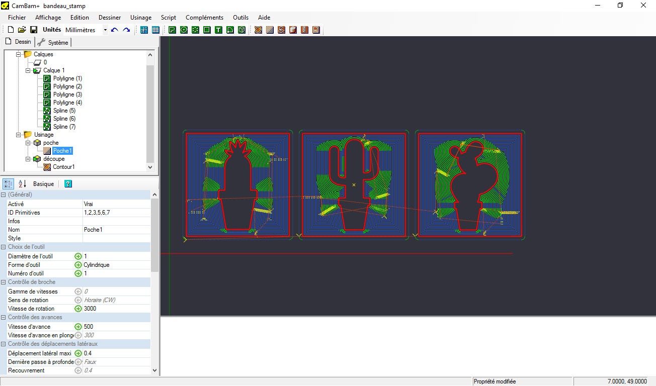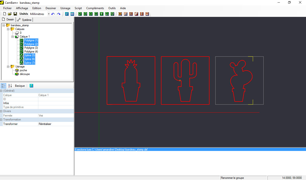 sélectionner avec la touche CTRL / ou CMD Les tracés / formes fermées pour le 1er usinage ( la poche ) ( ici ce sont les cactus )