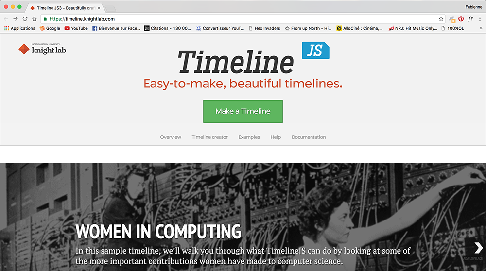 Réalisation d'une timeline à partir de l'outil https://timeline.knightlab.com/.
