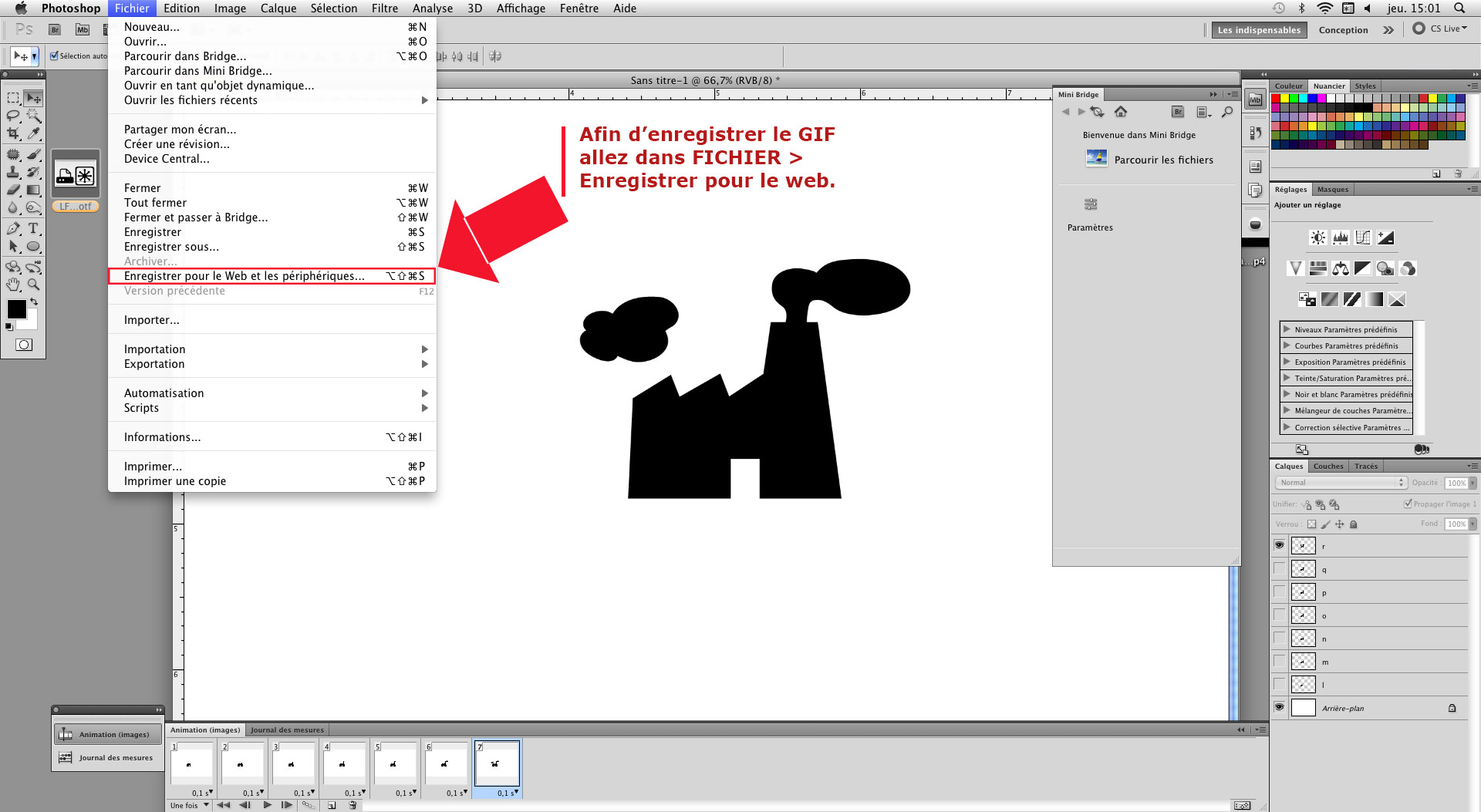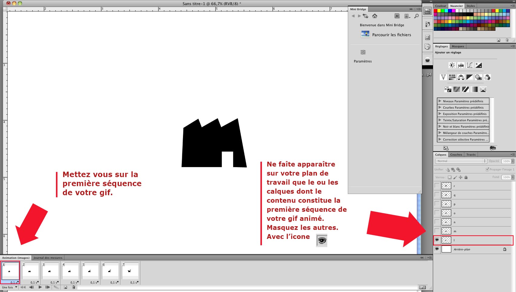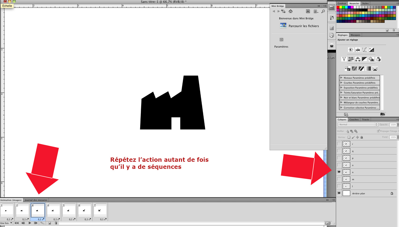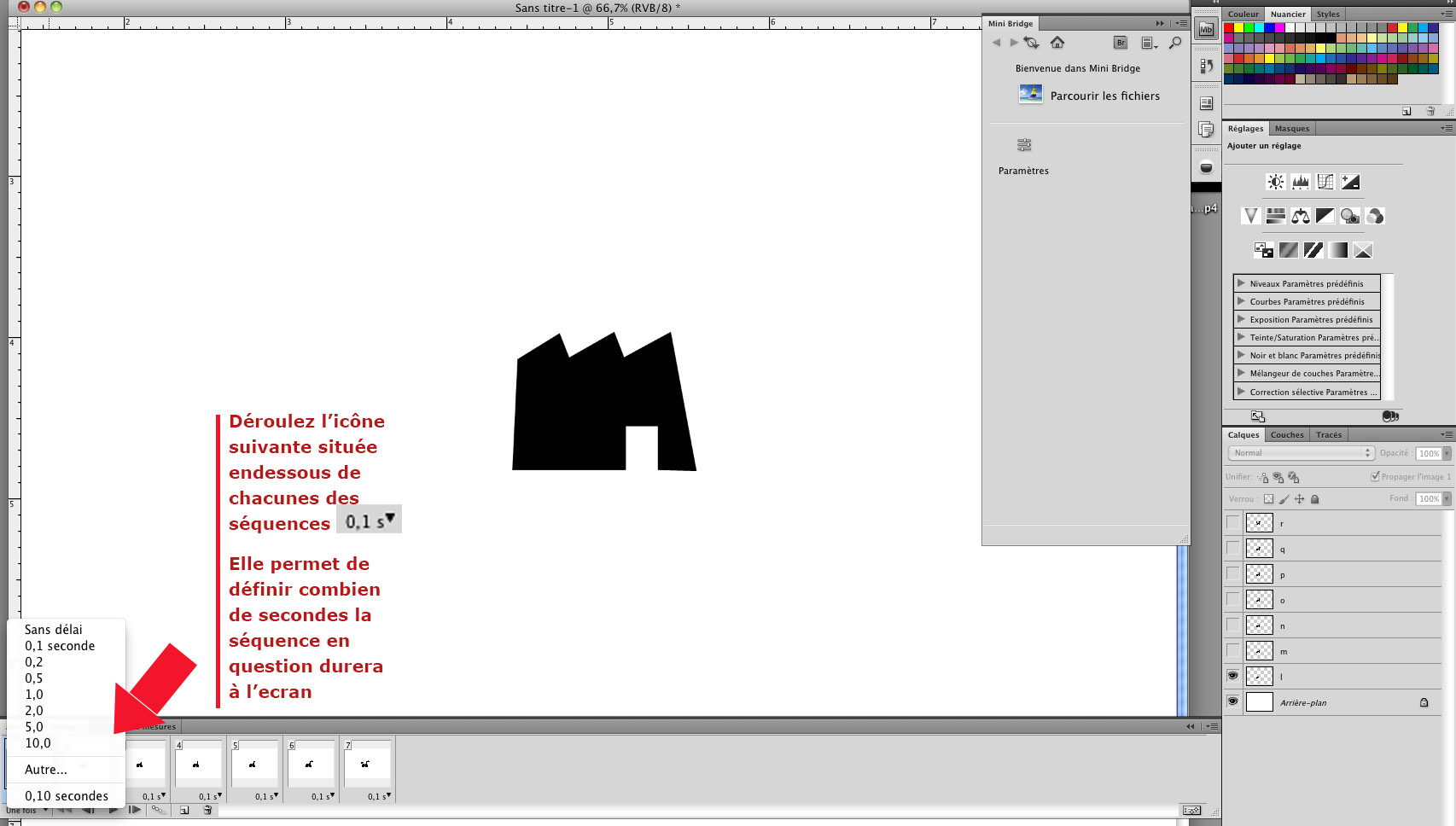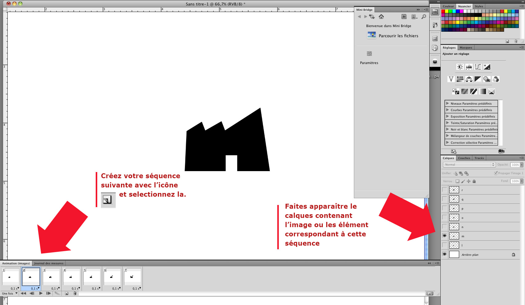 Votre GIF sera constitué de différentes images réparties sur les différentes séquences du panneau de Montage/Animation.