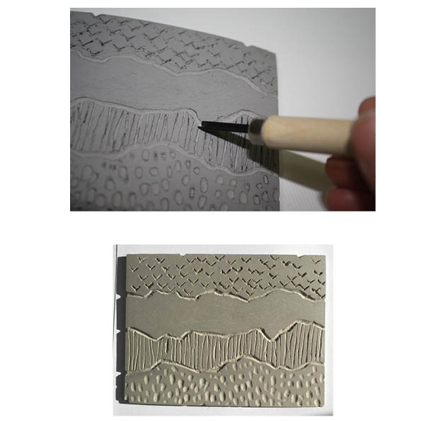 Avant de commencer à graver, il est plus facile dessiner son motif sur papier puis je de le reproduire – inversé – sur le linoleum.