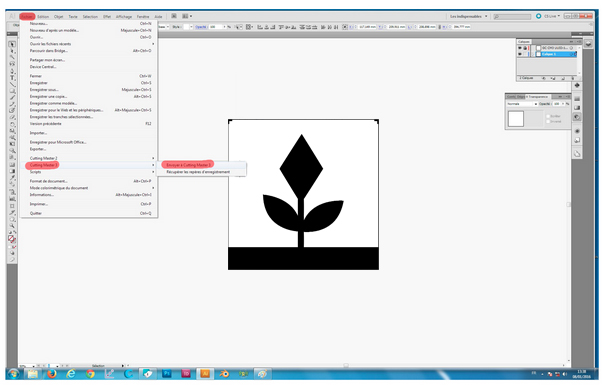 Ouvrir votre fichier Illustrator, puis cliquer sur Fichier > Cutting Master 3 > envoyer à cutting master 3