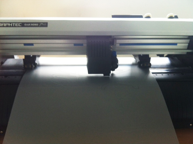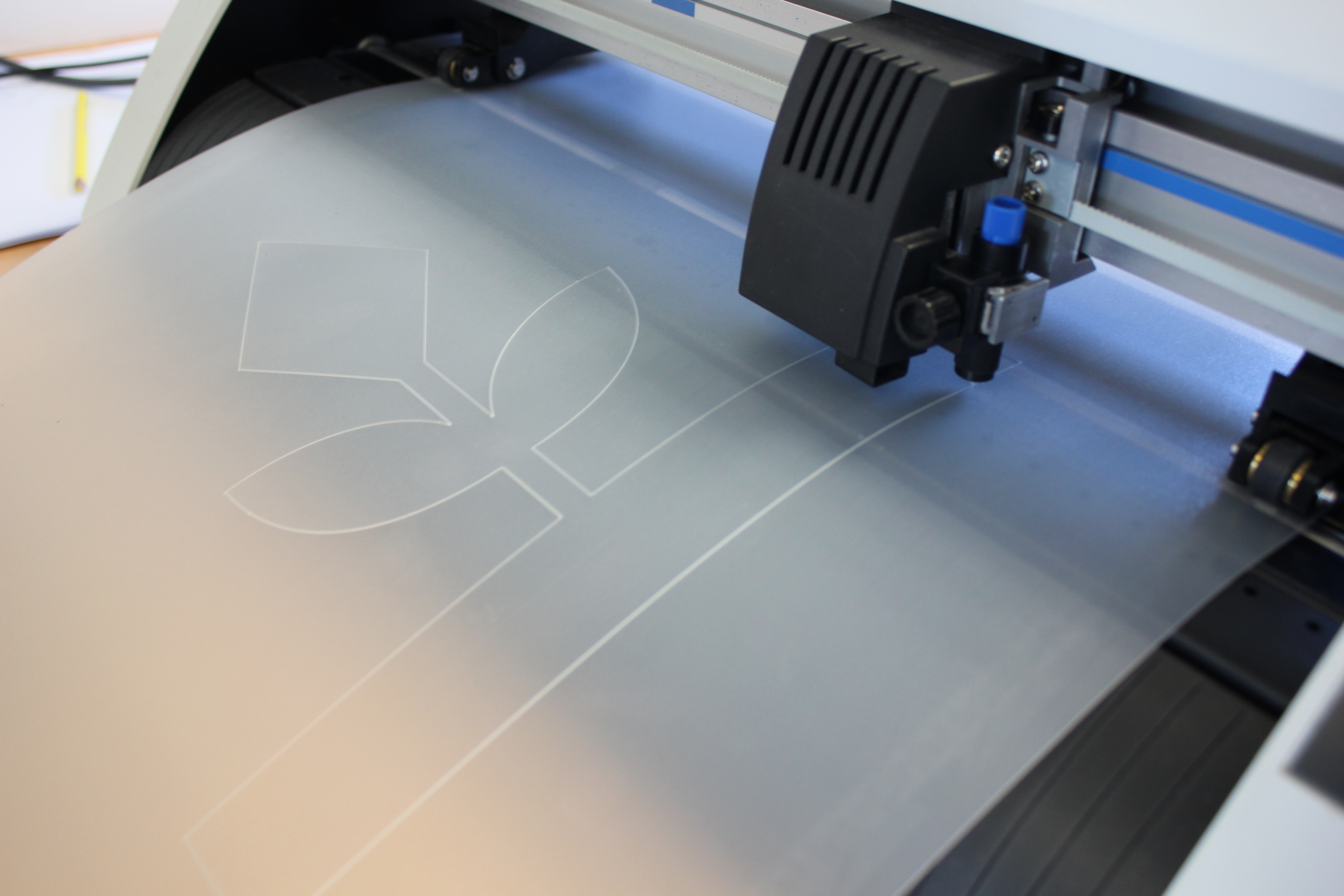 Nous avons tout d'abord fait des tests des dessins, en échangeant la lame par un feutre. Il s'agit de vérifier si le plotter a bien pris en compte le format, tout les traits du dessins et qu'il dessine à l'endroit que nous souhaitons.
