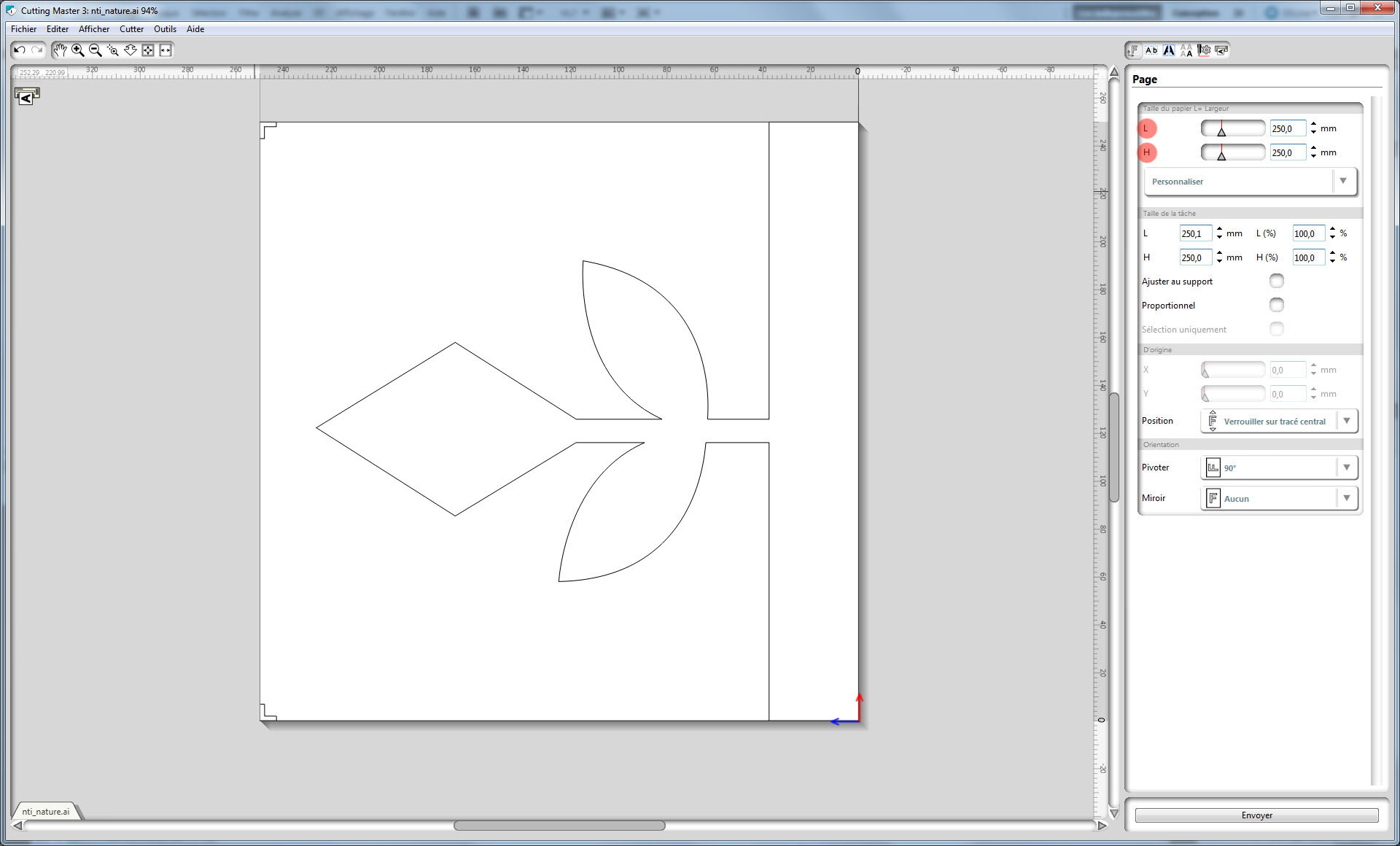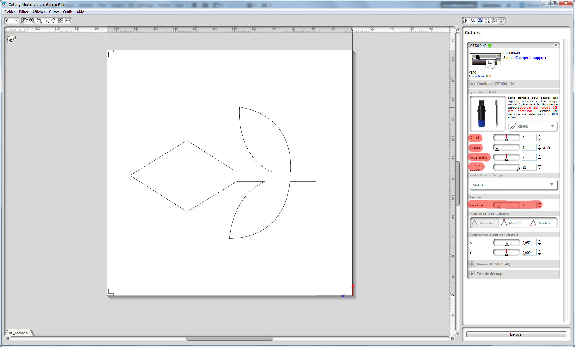 Cliquer sur Envoyer dans le logiciel Cutting Master 3 pour lancer la découpe