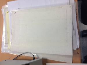 1ère étape : Mettre de la colle sur la feuille A3 pour qu'elle ne décolle pas du support plastique lors du dessin.