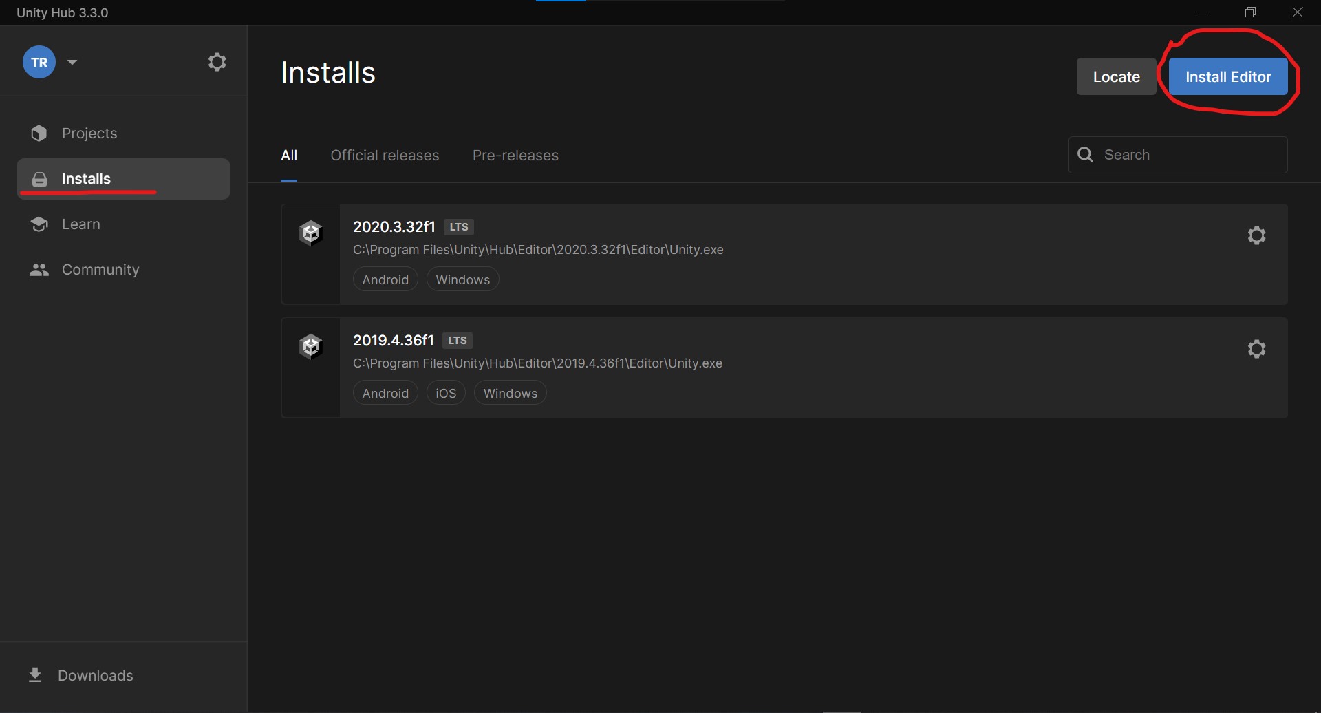 Il est vivement recommandé d'installer Unity depuis le Unity Hub. Ce logiciel permet de gérer vos projets, les différentes versions de Unity et certaines extensions.