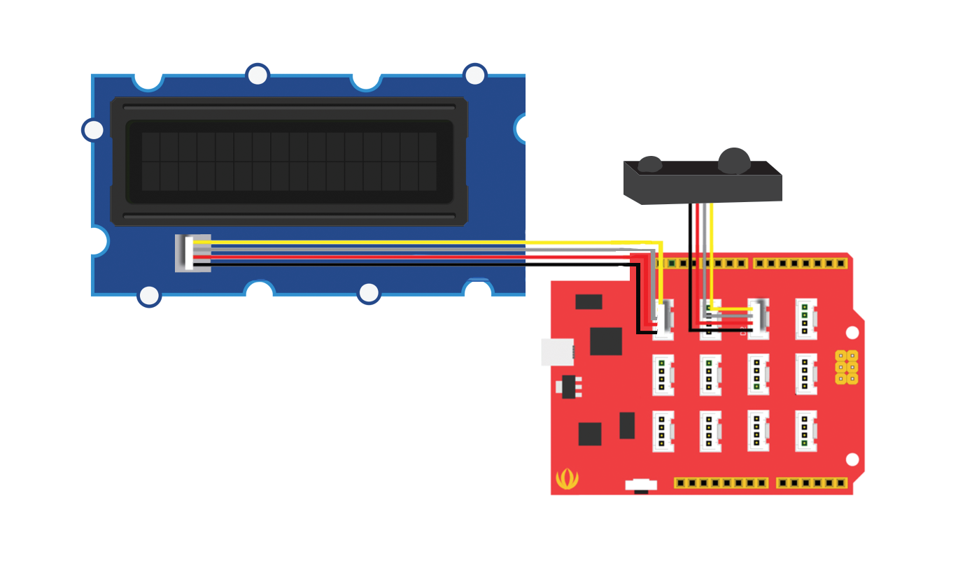 Réaliser un dispositif utilisant la carte Seeeduino et des capteurs groove tel que l'écran LCD RGB et le capteur IR de distance (80cm)