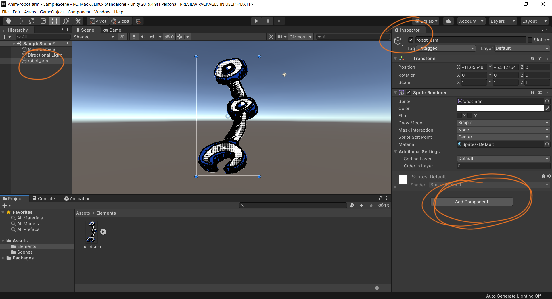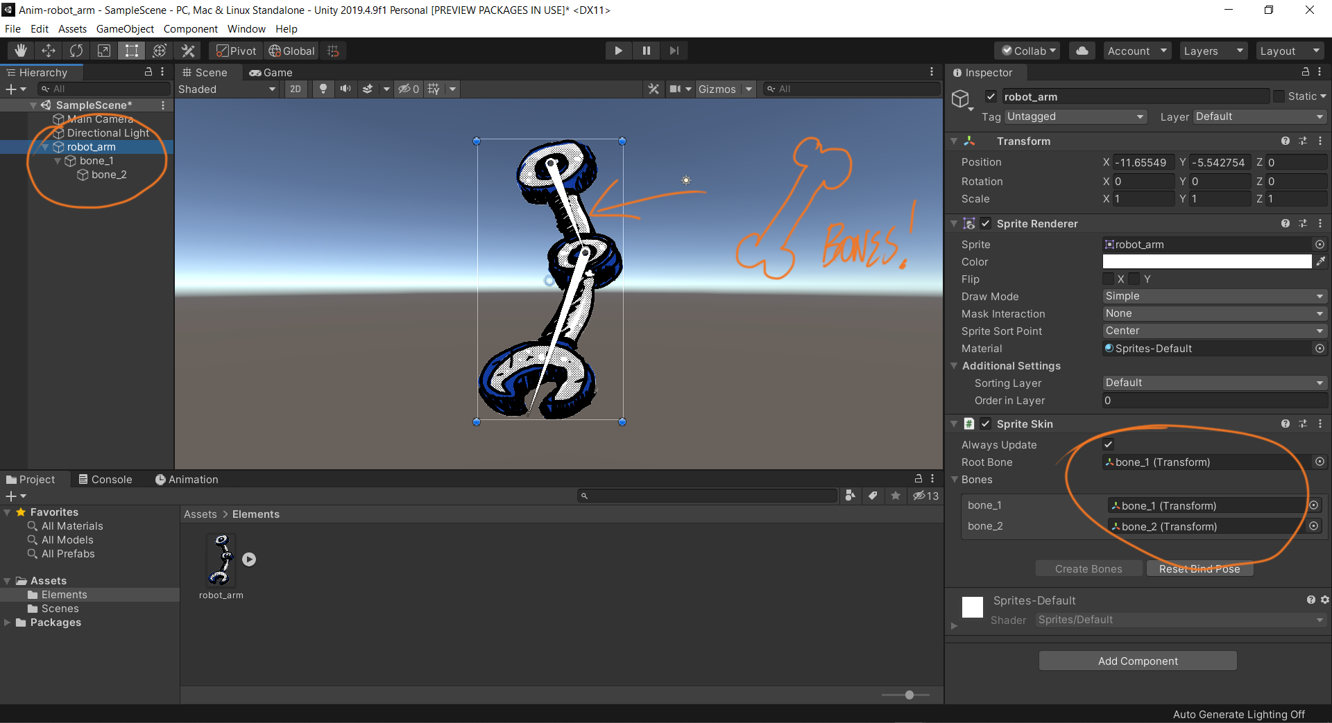 Après avoir fermé la fenêtre du Sprite Editor, il s'agit désormais de récupérer l'armature du Sprite dans la scène.