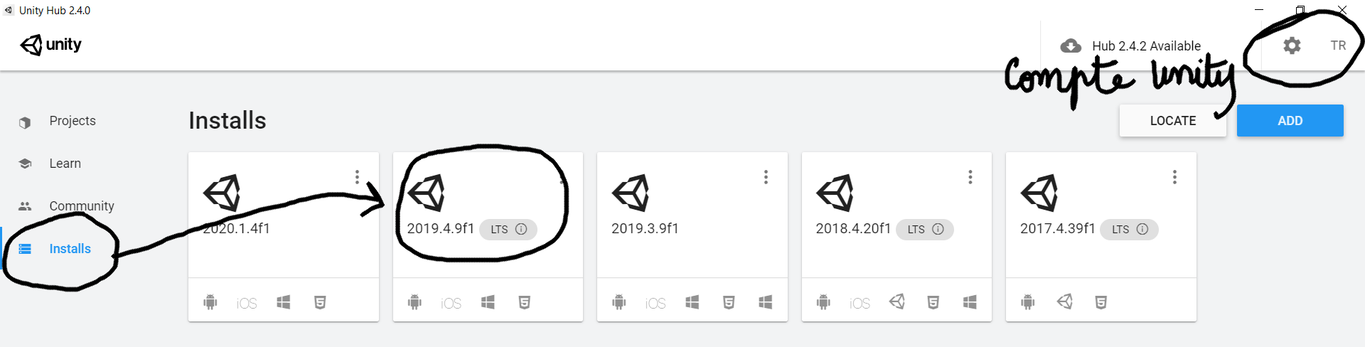 Il est vivement recommandé d'installer Unity depuis le Unity Hub. Ce logiciel permet de gérer vos projets, les différentes versions de Unity et certaines extensions.