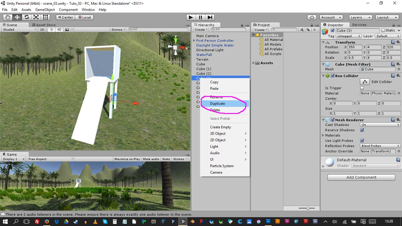 Un prefab est un objet préfabriqué un arbre, un rocher, un bâtiment ou un personnage etc. Divers prefabs ont déjà été utilisés durant ce tutoriel par exemple palmier et plan d'eau. Les prefabs constituent les motifs, les patterns ou briques ou de votre monde et permettent de gagner du temps durant la fabrication de votre jeu et d'économiser de la ressource machine.